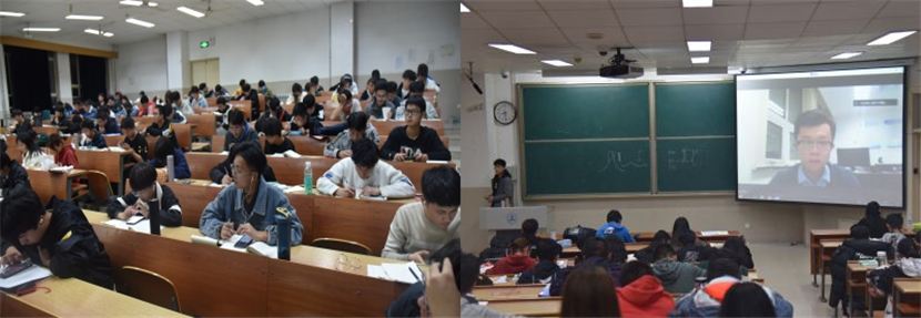 刘旭阳在济南大学学习期间,曾获国家励志奖学金、济南大学一等奖学金、济南大学优秀学生干部、济南大学优秀团干部、济南大学暑期社会实践优秀学生等荣誉称号,后考取山东省拔尖选调生,现任滨州市无棣县水湾镇白杨村党支部书记助理。刘旭阳联系自身经历,讲述自己大学生活经历以及报考选调生的前后感受,有针对的对考研、就业和考公务员三个方向的选择作出指导和提供建议。刘旭阳认为在校大学生应该努力学习文化课知识,积极参加课外活动,从而不断提高自身能力,为以后的工作生活作准备。最后,同学们纷纷通过弹幕提出问题,刘旭阳详细解答,形成了良好的互动氛围,激发了同学们的生涯规划热情。