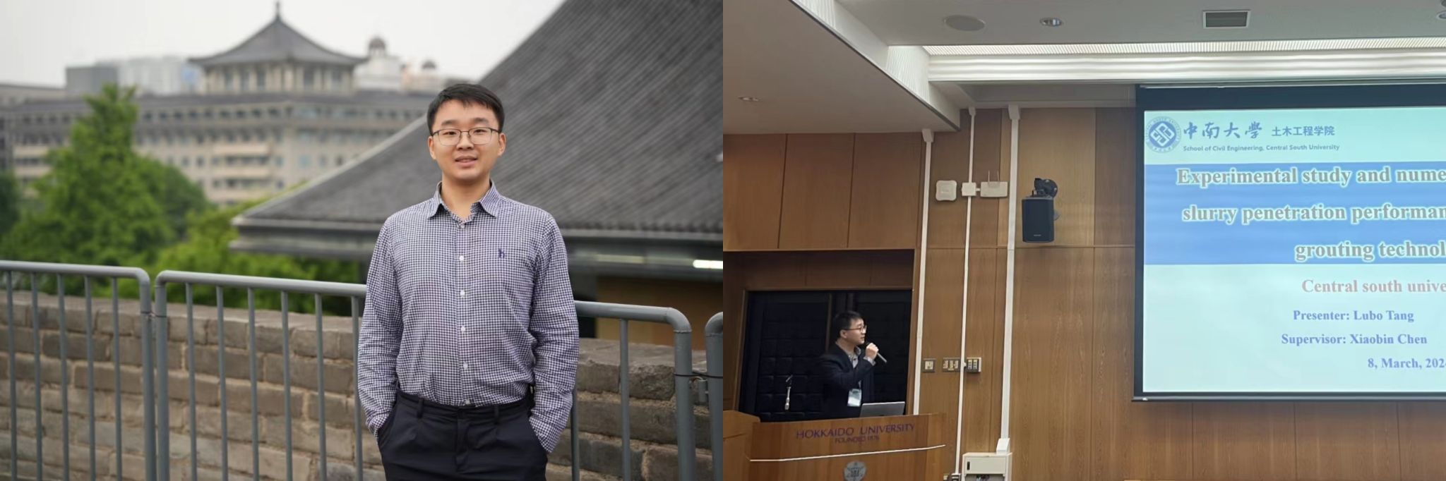 唐禄博在中南大学读研期间勤奋好学,综合成绩专业排名第一。他不畏惧艰苦恶劣的研究环境和科研条件,聚焦极端复杂环境下岩土加固课题研究。针对注浆加固时浆液分布不均匀、注浆效率低难题,创新提出了振荡射流脉动注浆技术,设计了一系列新型振荡射流注浆工具,研究了工具内部流场动态演化规律及固-液二相耦合行为,有效提升了注浆效果;研发了新型微纳米气泡注浆材料,提升了浆液流动性,改善了了浆液堵塞现象;针对注浆水平钻进摩阻大的难题,提出了轴向振荡减阻工艺,形成了独特的注浆快速钻进、浆液高效扩散、绿色材料技术体系,在岩土加固领域获得了创新性研究成果。