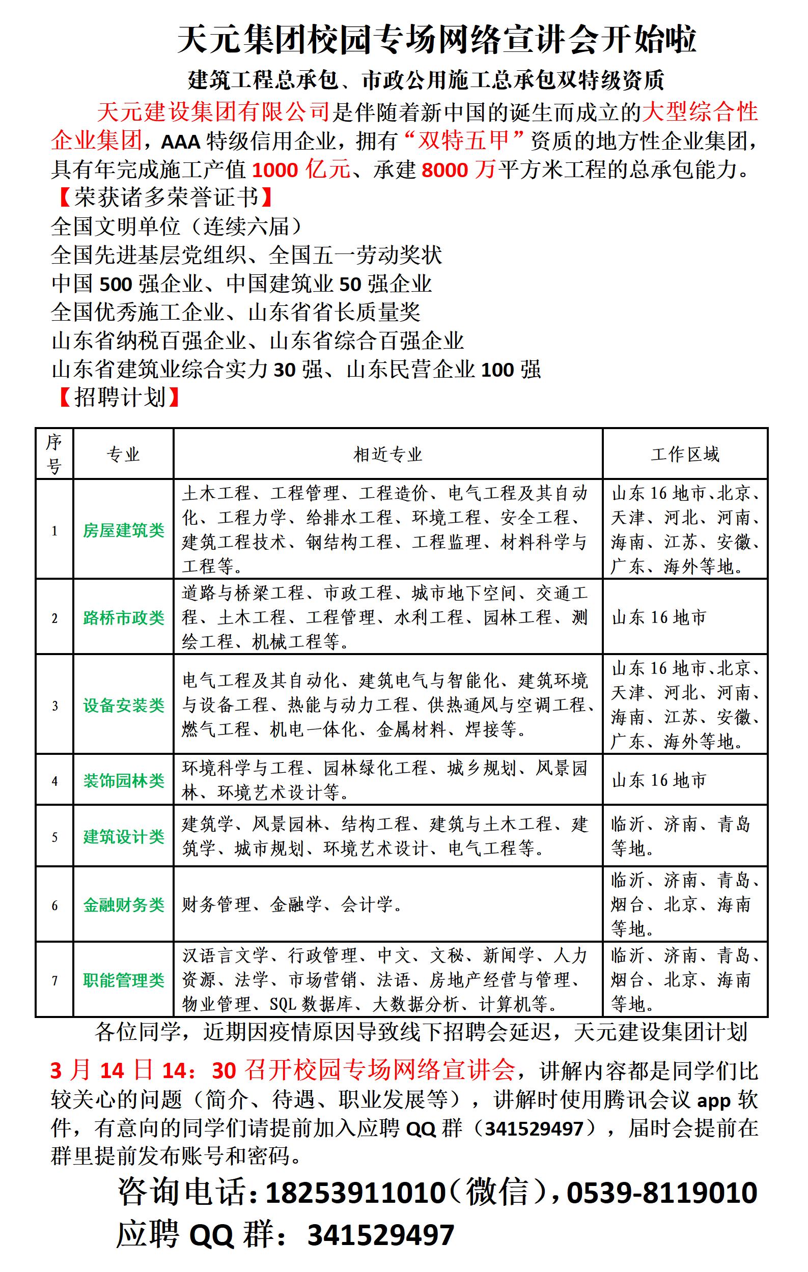 下一条:广纳天下英才 筑梦成就未来 济南城建集团面向2022届大学生招聘简章
