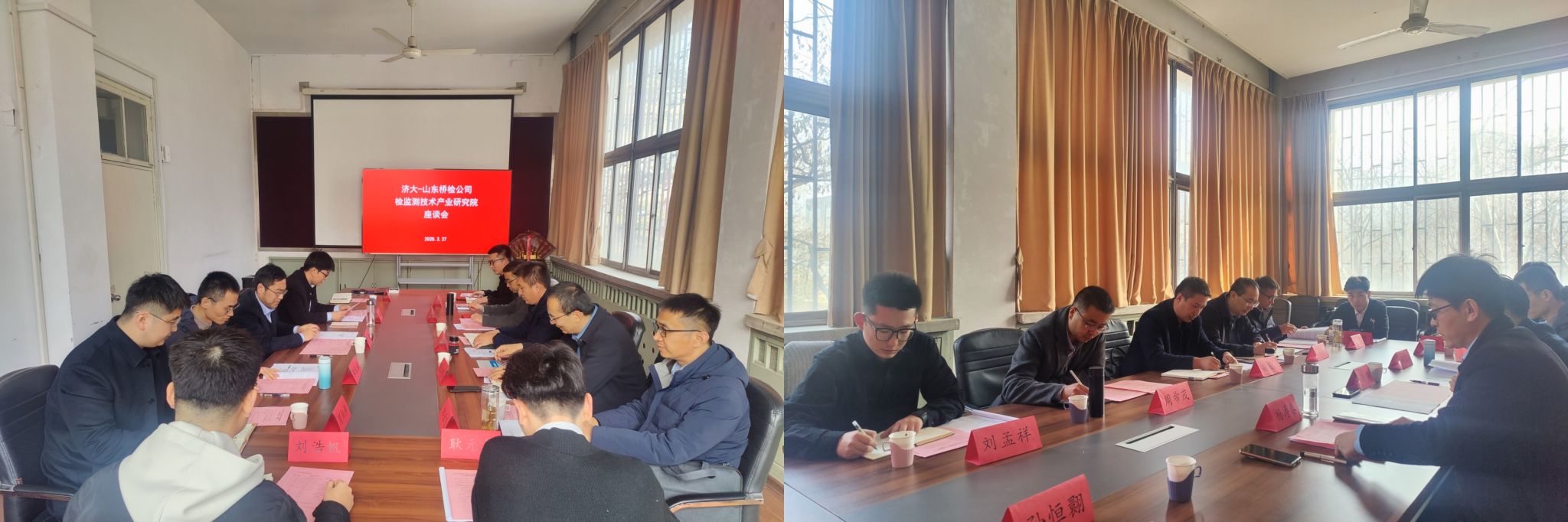 2月27日下午,济大-山东桥检公司检监测技术产业研究院研讨会在我院召开。学院党委书记李超、院长谢群、副院长杨涛春,山东桥检公司董事长高庆水、副总经理黄江明、周希茂,以及学院相关教师和企业人员出席研讨会,会议由杨涛春主持。