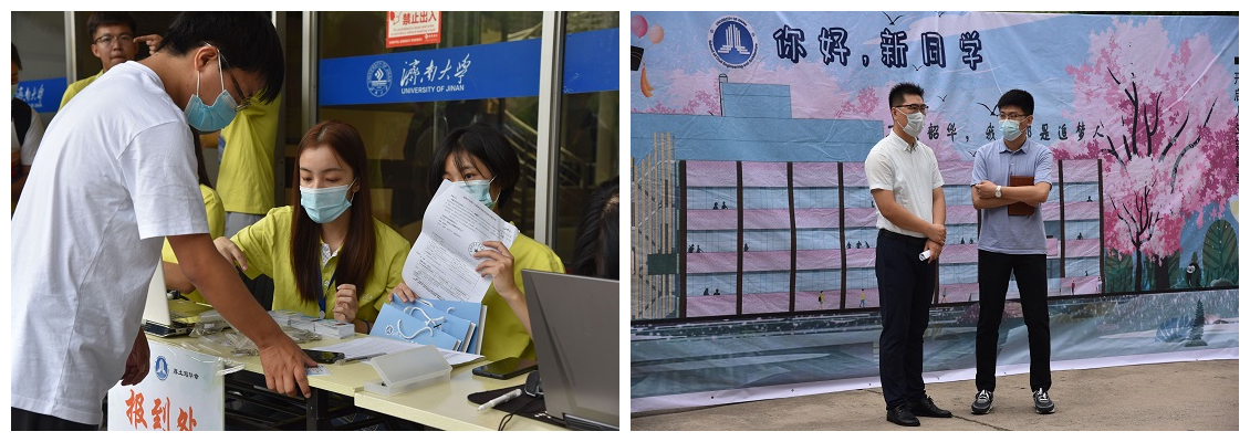 一贯的高质量服务理念,旨在为新生及家长提供“热情、周到、细致、安全”的一站式入学服务。新生报到当天,学院领导老师及迎新工作人员身穿院服,在八教门口搭建的新生接待处帮助报到的新生准确进行注册登记,为新生家长答疑解惑,并同他们在迎新背景板前合影留念。随后,学院迎新工作人员为新生送上了学院特别准备的入学礼包,内含宿舍钥匙、《土建学院2020级新生口袋书》、《济南大学学生制度手册》、《学生疫情防控指导手册》、84消毒液等入学必备物品,并主动帮助他们搬运大件行李,入住宿舍整顿休憩。按照学院部署,本次迎新工作着重强调安全意识,为新生及工作人员提供完备的安全保障,相关部门密切配合,各项工作有序进行。