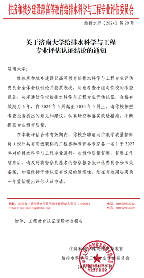 热烈祝贺天天棋牌 排水科学与工程专业通过专业评估(认证)复评