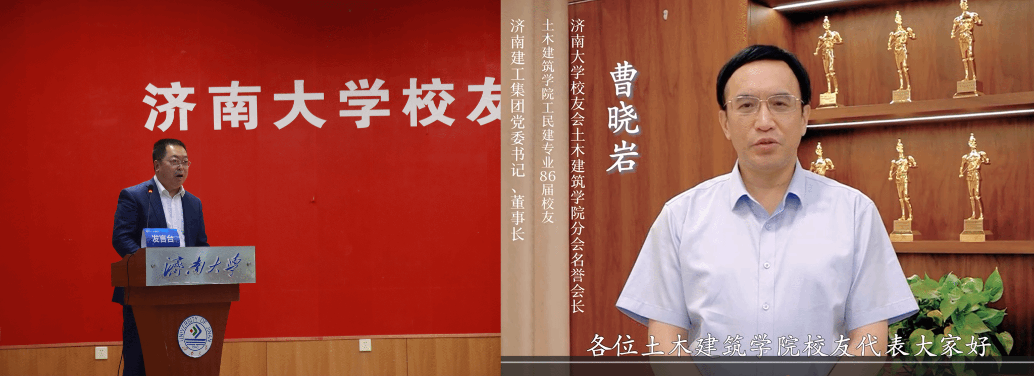 校友会名誉会长、济南建工集团党委书记、董事长、86届校友曹晓岩通过视频讲话方式祝贺校友会成立,表示定将与校友共同努力,为母校和学院的发展增光添彩;与校友并肩携手,共同发展,以校友发展促进母校发展。