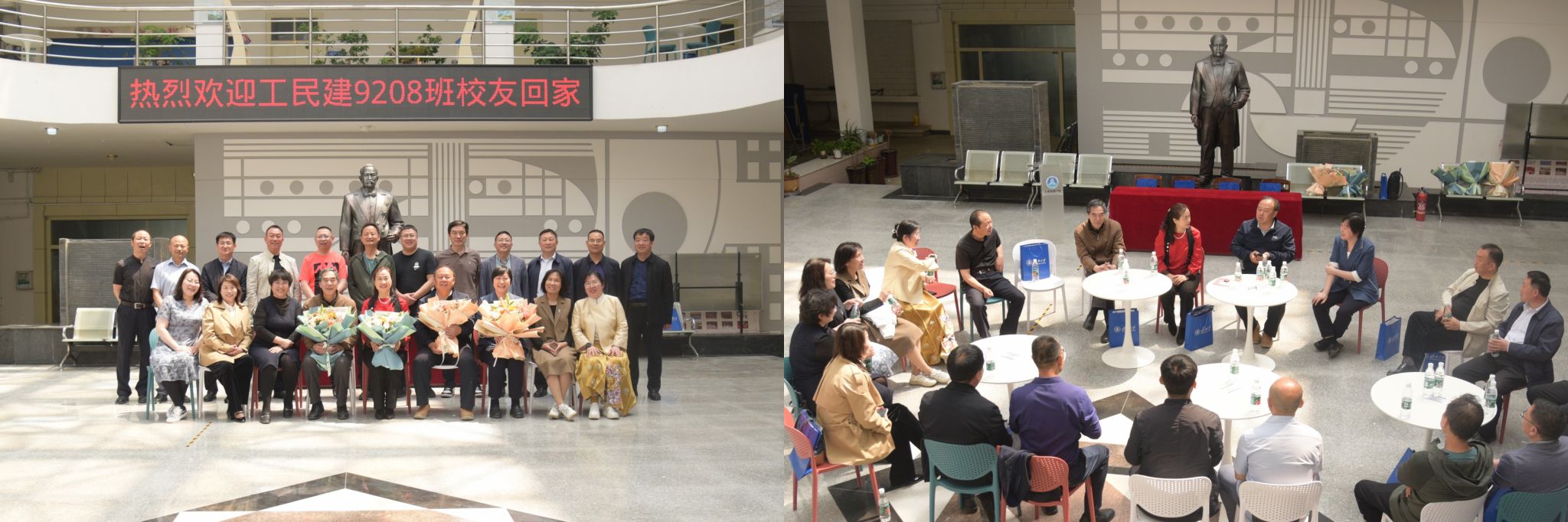 工民建9208班校友毕业三十周年返校联谊活动在学院举行。时任工民建9208班老师代表栾志强、曲振霞、舒庆琏,以及工民建9208班的20余名同学参加了活动。