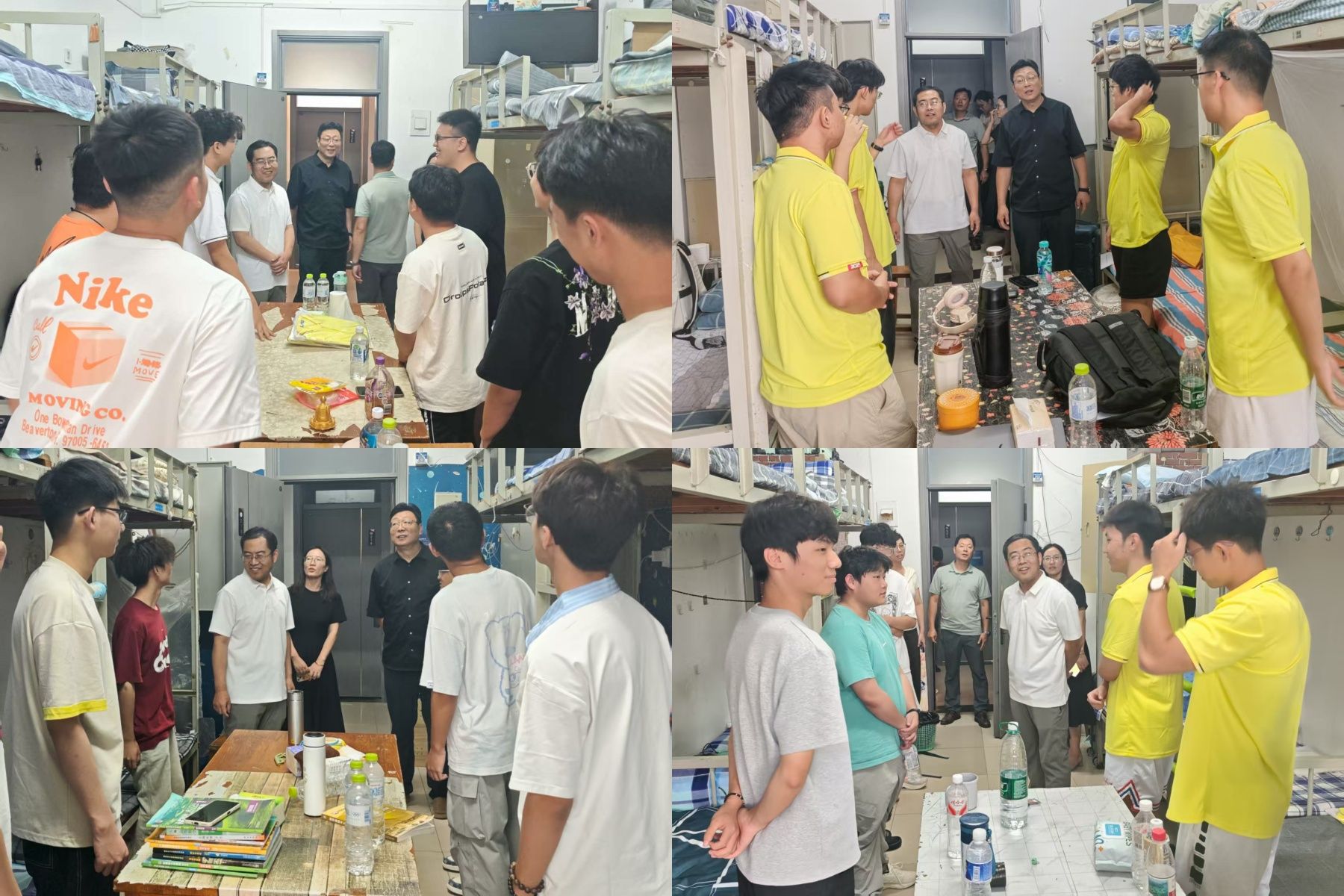 党委书记李超,院长谢群,党委副书记、副院长李健慧,副院长王嘉斌及全体辅导员深入新生宿舍开展走访慰问活动,实地了解新生的入学适应情况,并围绕校园生活、学业规划等方面与同学们亲切交流、暖心指导。