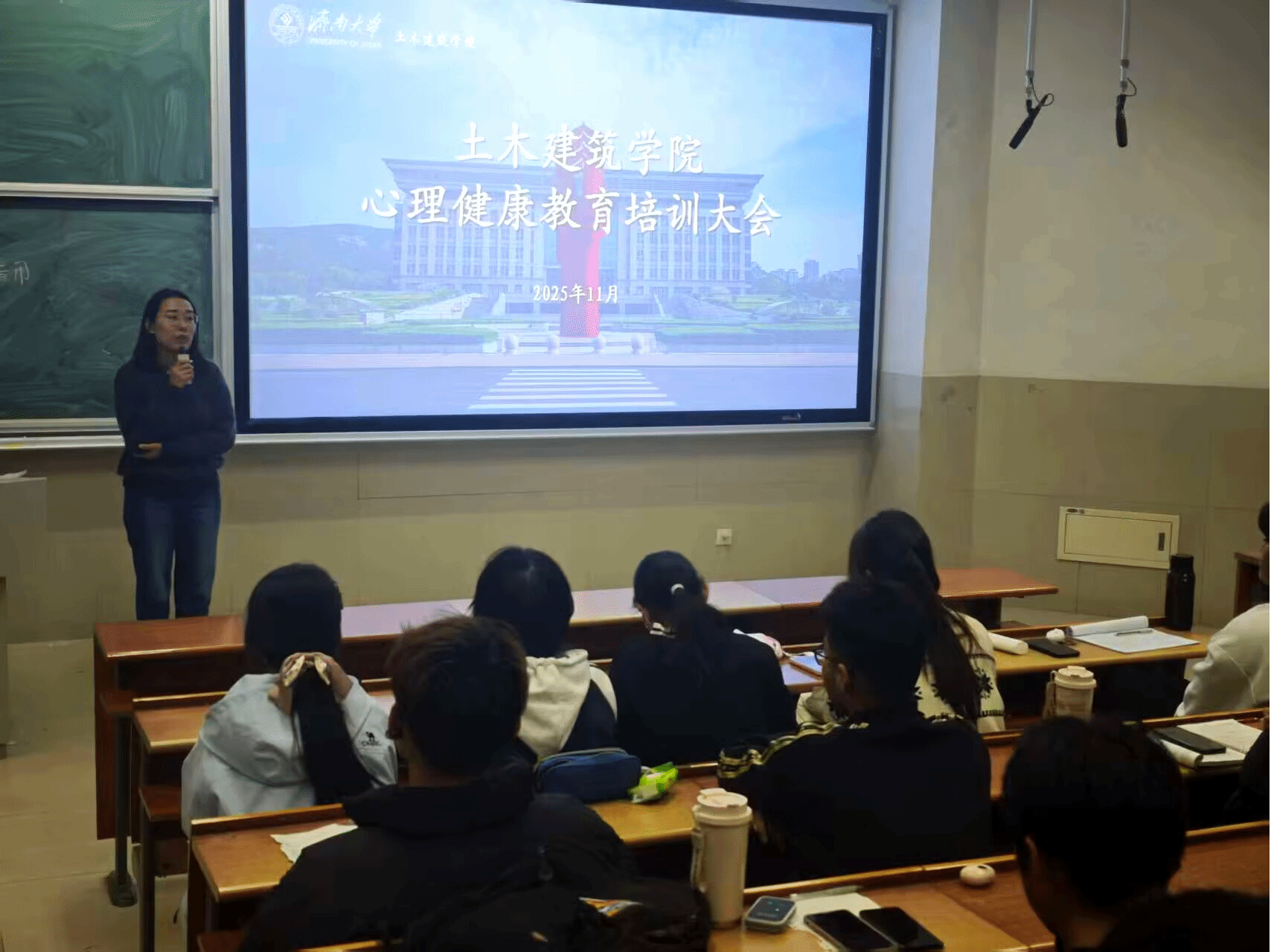 孙晓爽从心理健康的重要性讲起,强调心理健康是身体健康不可或缺的一部分,个人的心理状态会直接影响到学习效率和生活质量。接着,她详细讲解了心理压力的来源、预防常见心理疾病的方法以及调整情绪的技巧。她提到,生活压力、学业挑战和人际关系是导致心理问题的主要因素。为预防心理疾病,同学们需要学会调整心态,保持积极乐观的情绪。此外,学会与人沟通、分享个人困扰,并寻求支持和帮助也至关重要。孙晓爽老师还分享了多种实用的心理调适技巧。她建议同学们在面对压力时,可以尝试深呼吸、冥想、运动等方法来调节情绪。这些方法简单有效,有助于同学们更快地适应大学生活。