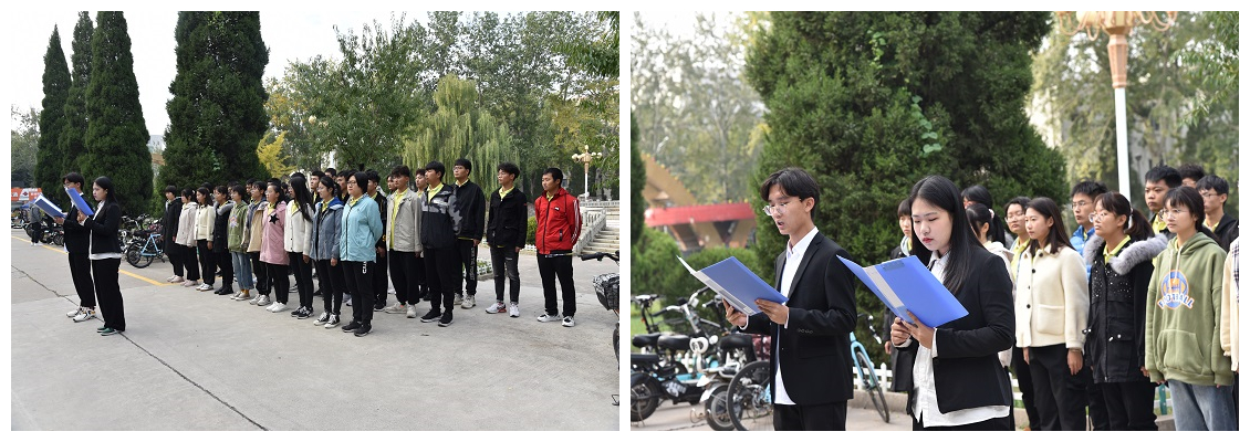 于绿泉广场举行“学宪法,讲宪法”晨读活动,活动得到学院2020级新生的积极响应。