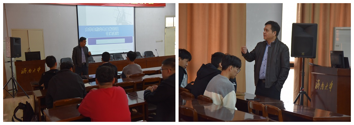 于济南大学第八教学楼开展“与企业家对话”系列讲座。会议由学生工作办公室段继燕主持,特邀青岛东捷建设工程有限公司人力资源部经理王化君讲话,土木建筑学院学子积极参加。