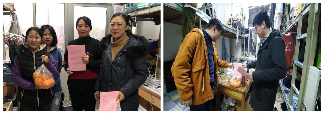学院领导老师走访了每一位考研学子的宿舍,详细询问了同学们的考研复习情况,嘱咐同学们合理安排好学习时间,劳逸结合,适当锻炼身体,缓解学习压力。提醒同学们在安心学习的同时,注意保持宿舍卫生环境,戴口罩、勤洗手、常通风,认真做好在校期间各项防护工作,以健康的体魄迎接最后的冲刺。学院领导老师还为每一位考研学子送去了橙子和《致在线棋牌游戏
