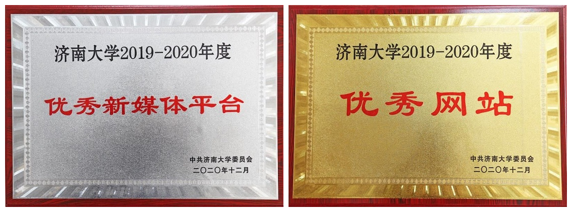 官方网站和土厚木华微信公众号荣获2019-2020年度济南大学“优秀网站”“优秀新媒体平台”称号。