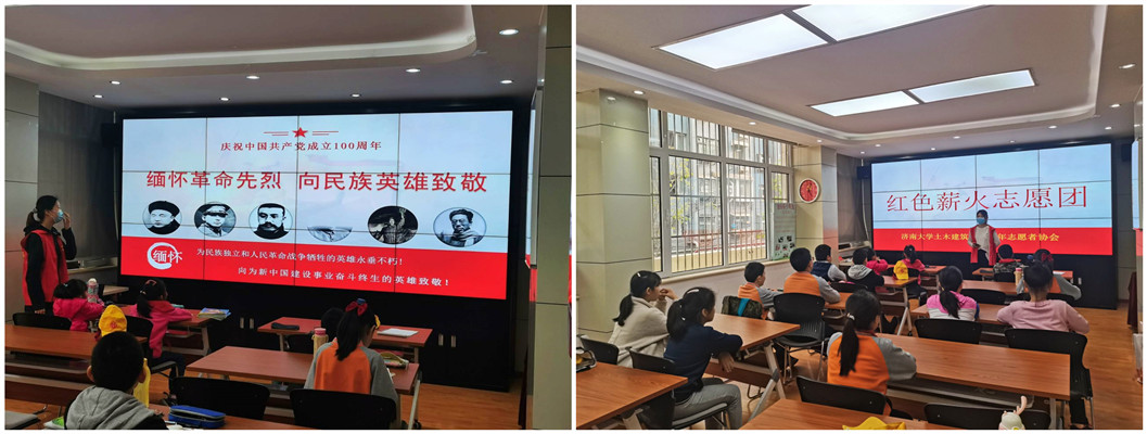 2021年4月15日,“红色薪火”志愿团在睦和苑社区面向十名青少年儿童开展了社区宣讲活动。当天下午,志愿团的志愿者们来到睦和苑社区开展了有关革命英雄事迹的宣讲以及红色诗歌朗诵活动,让同学们感受红色经典的魅力。志愿者们以王朴为例向青少年儿童们宣讲了有关少年英雄抛头颅洒热血,一心向党,为祖国革命胜利奉献自己的事迹。此外,志愿者和青少年们一起朗诵了《我爱这土地》,他们用深情的朗诵烘托起了对祖国的热爱,让同学们在感受到对信念的坚持的同时,更加感慨奋斗过程中的奉献精神。