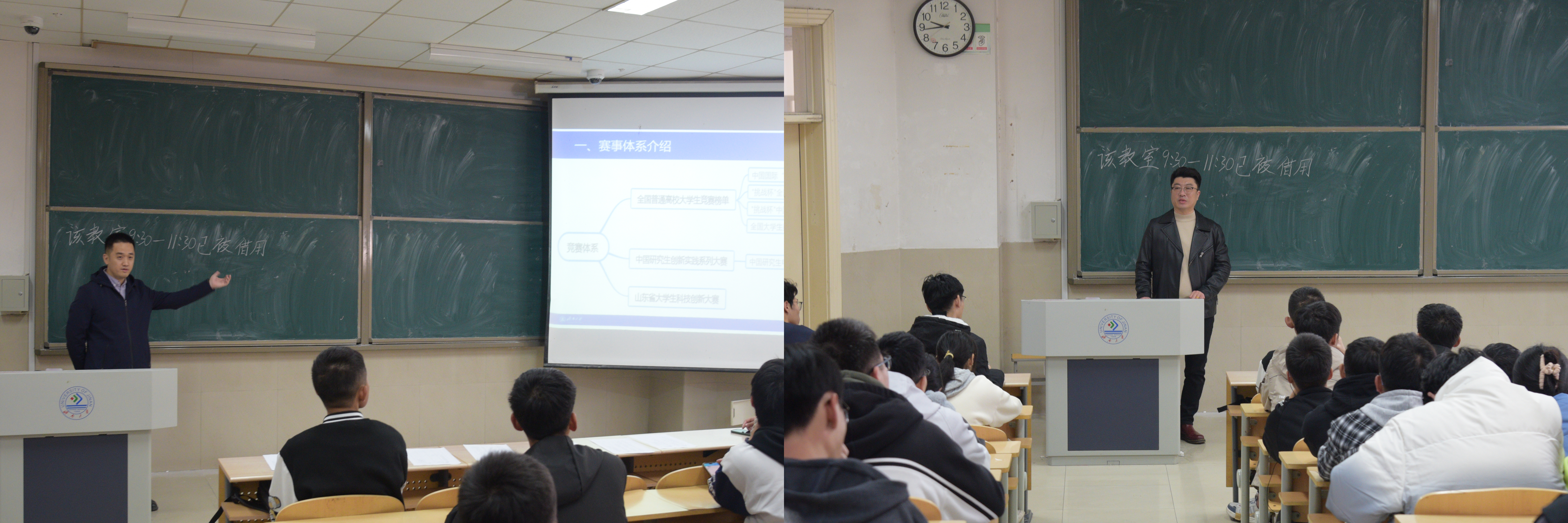 王圣荣老师的宣讲以赛事体系介绍为开端,向我们介绍了大学期间可能参加的各项科技创新赛事,并详细介绍了中国国际“互联网+”大学生创新创业大赛、“挑战杯”等赛事的比赛流程和对学业提升的重要意义。他鼓励同学们积极参加各项赛事来充实自己的校园生活,开发自己的创新思维。随着对科技创新赛事讲解的逐步深入,现场气氛不断推向高潮。最后,在同学们热烈的掌声中,本次科技创新赛事宣讲会落下了帷幕。
