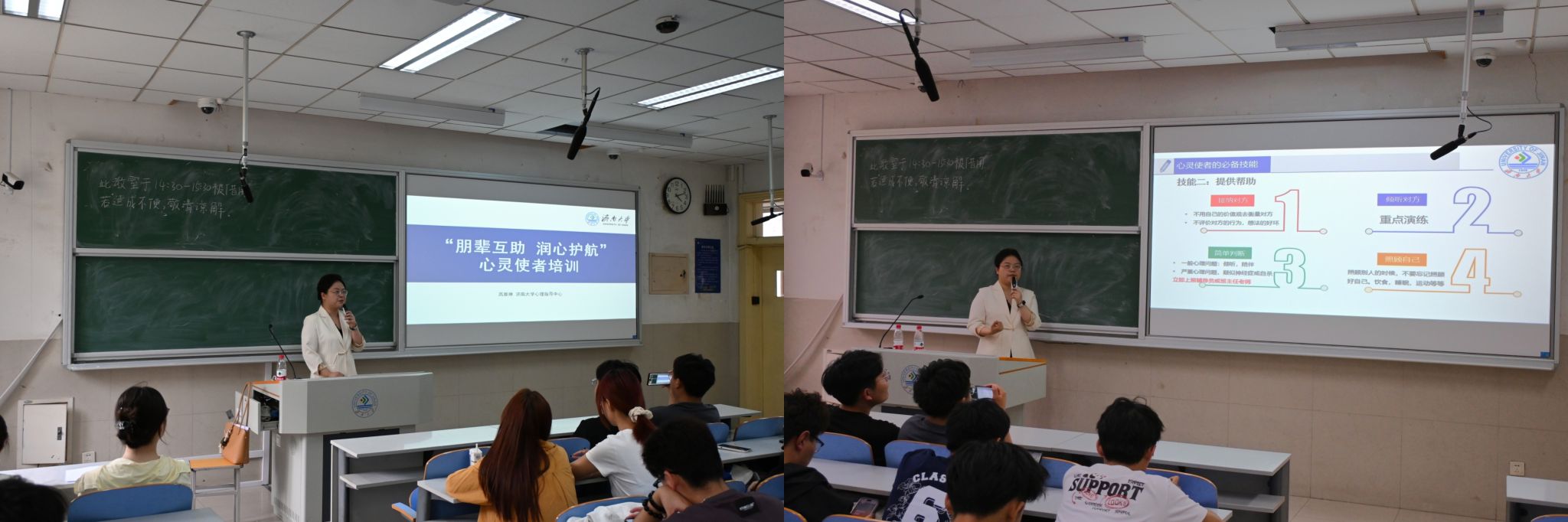 邀请学校心理指导中心高雅琳在10教203教室开展“朋辈互助,润心护航”2024年心灵使者及心灵联络员培训。