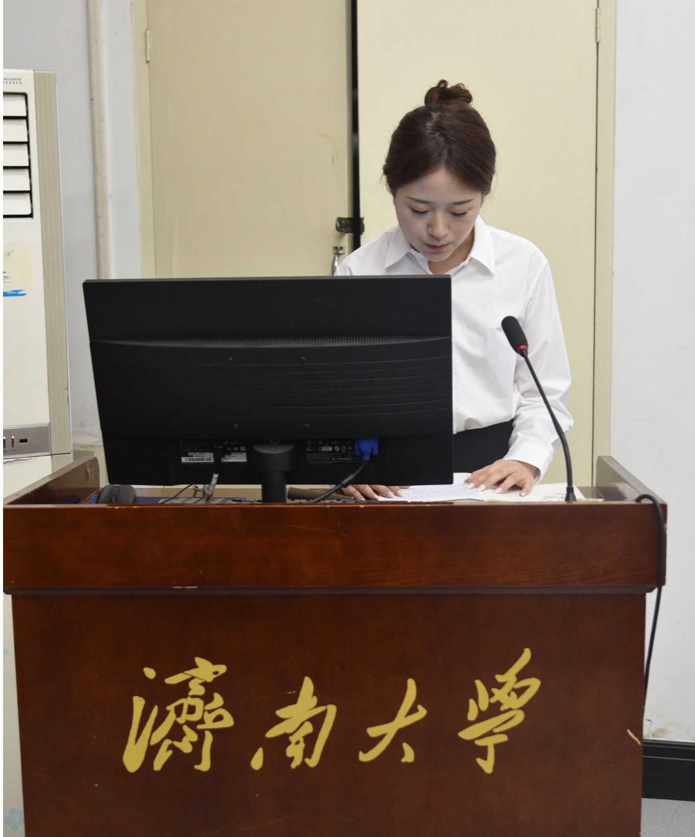 学生会负责人张瀚丹代表新一届学生组织作表态发言。全体学生干部将切实发挥学生干部的引领示范作用,不忘服务初心,做好学院师生的“桥梁纽带”,以更加饱满的热情投入到学习工作中。