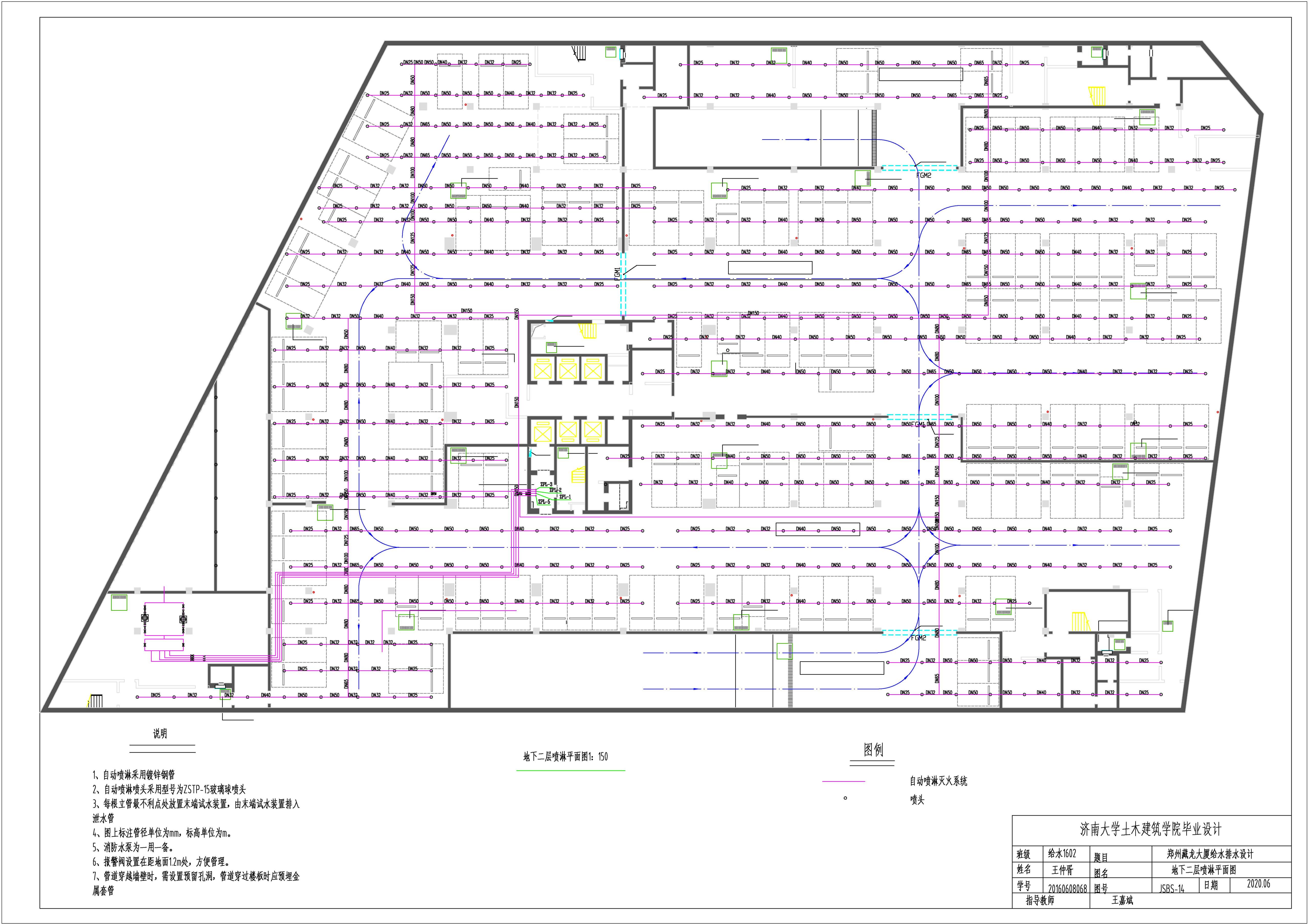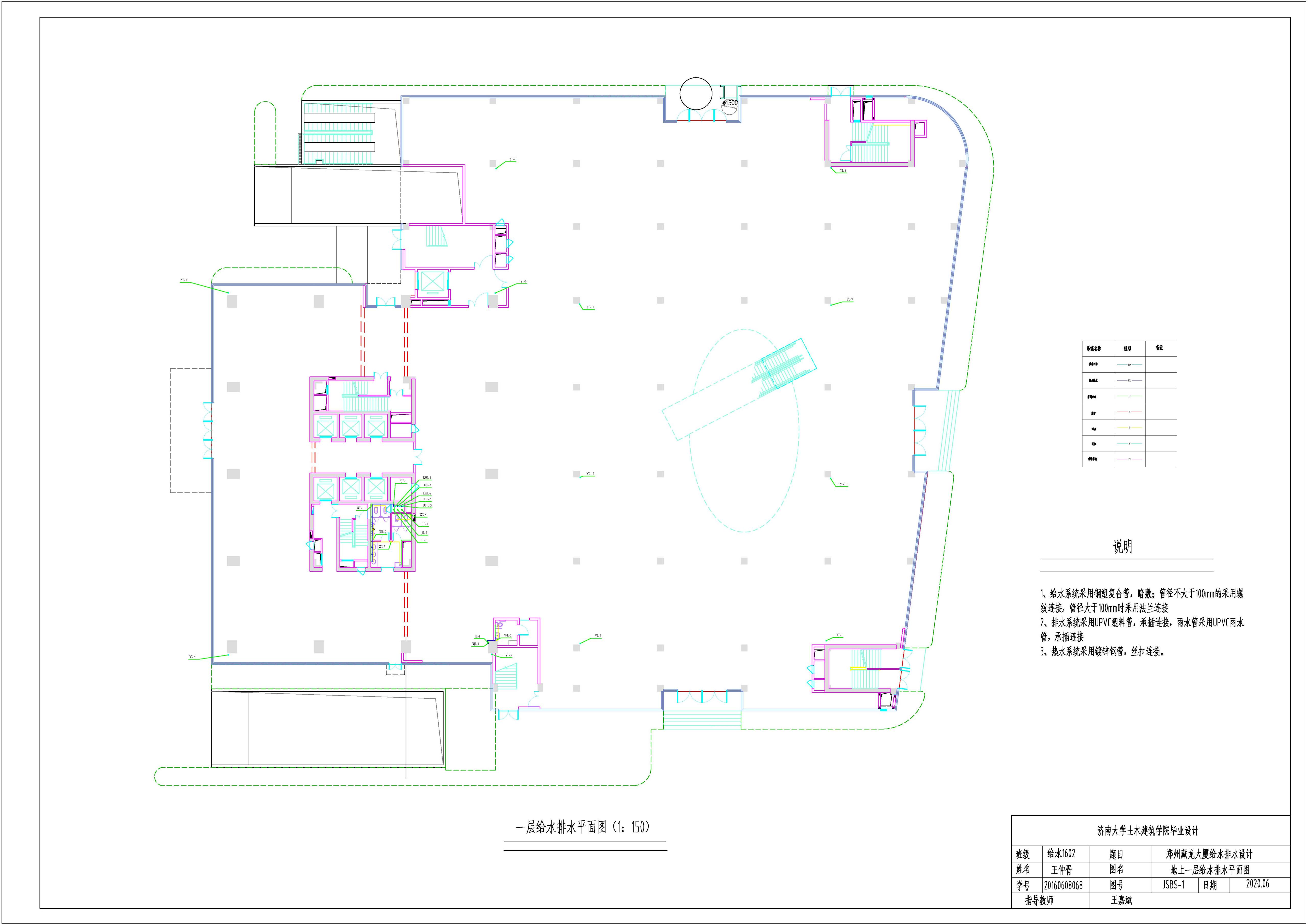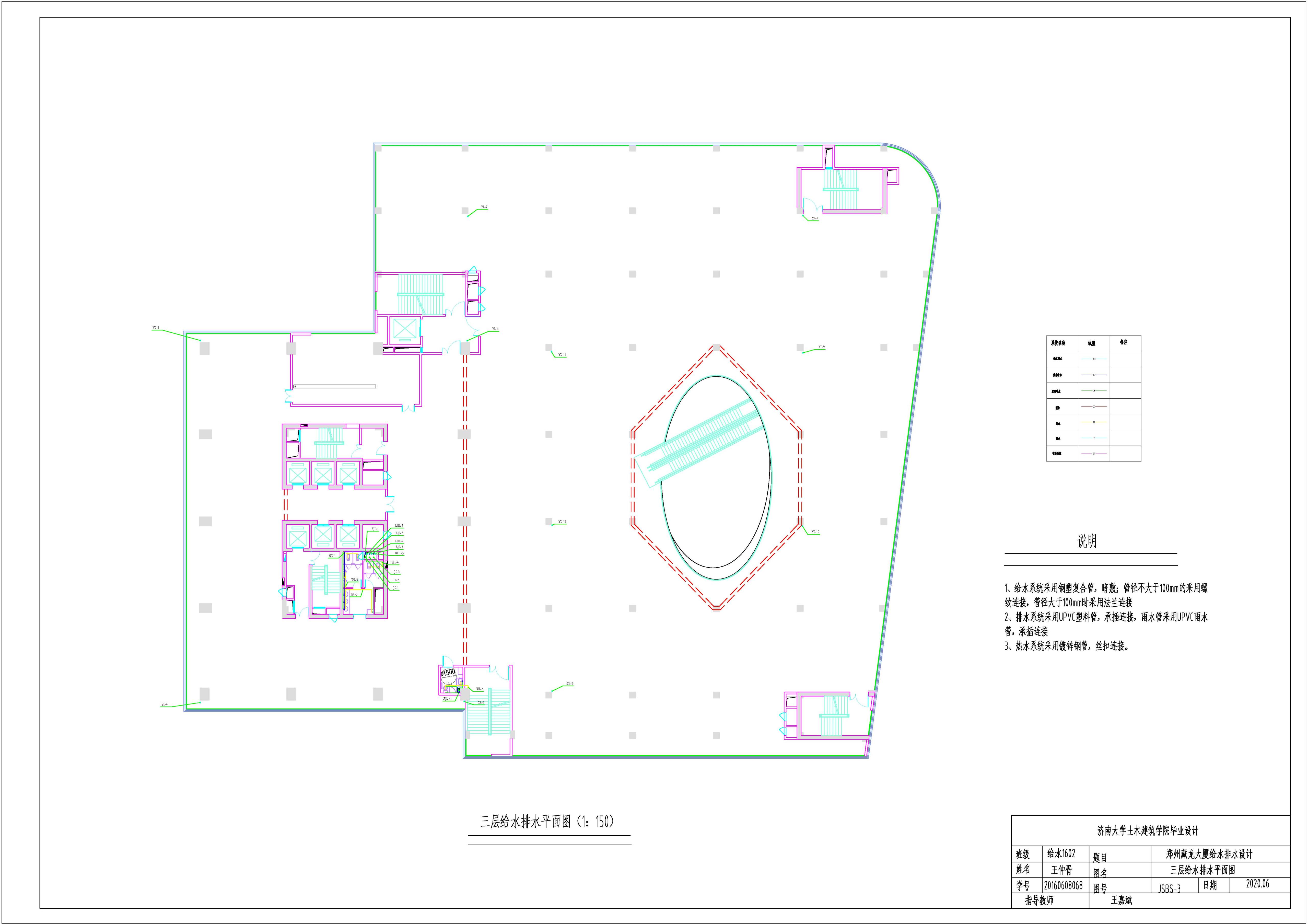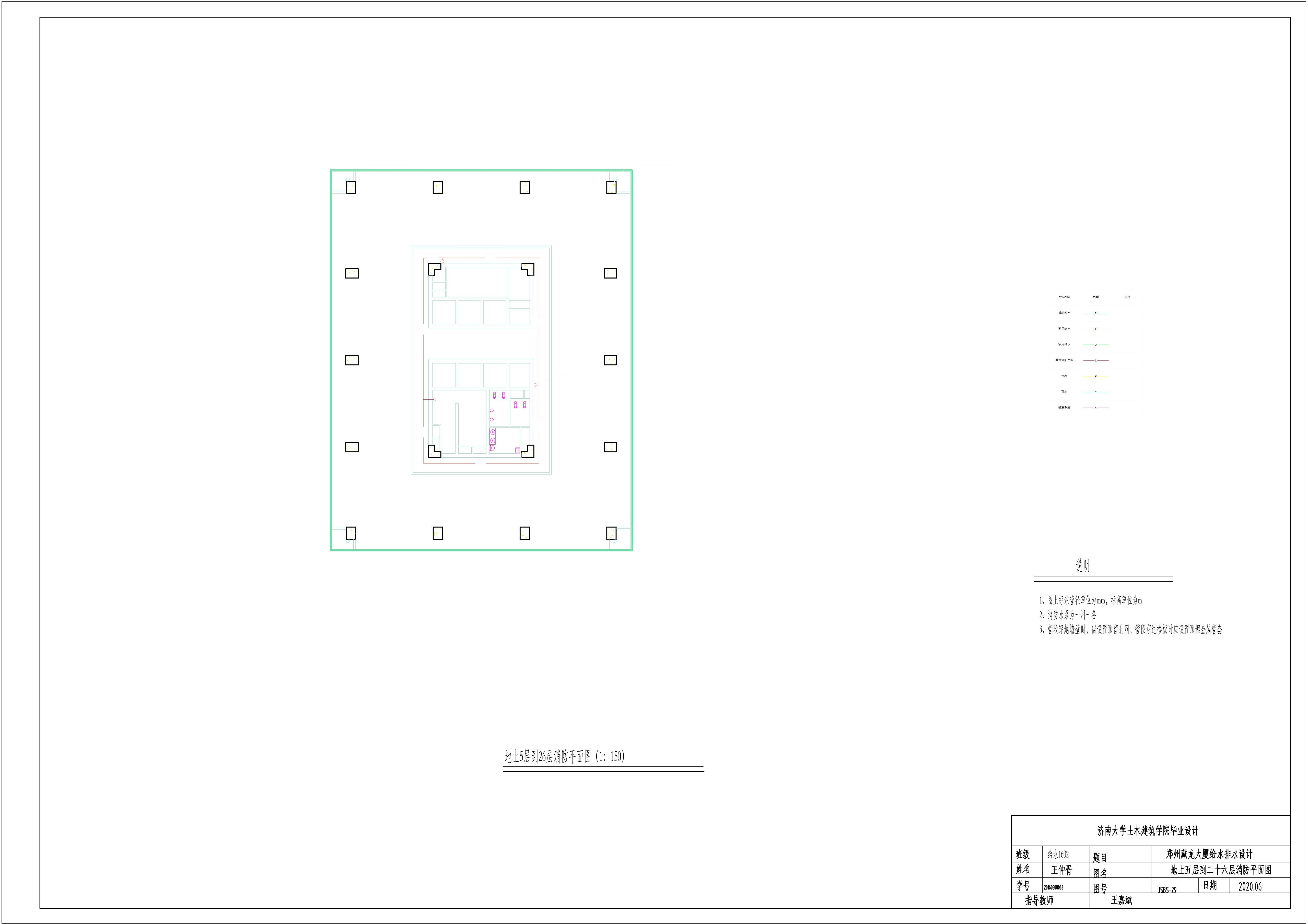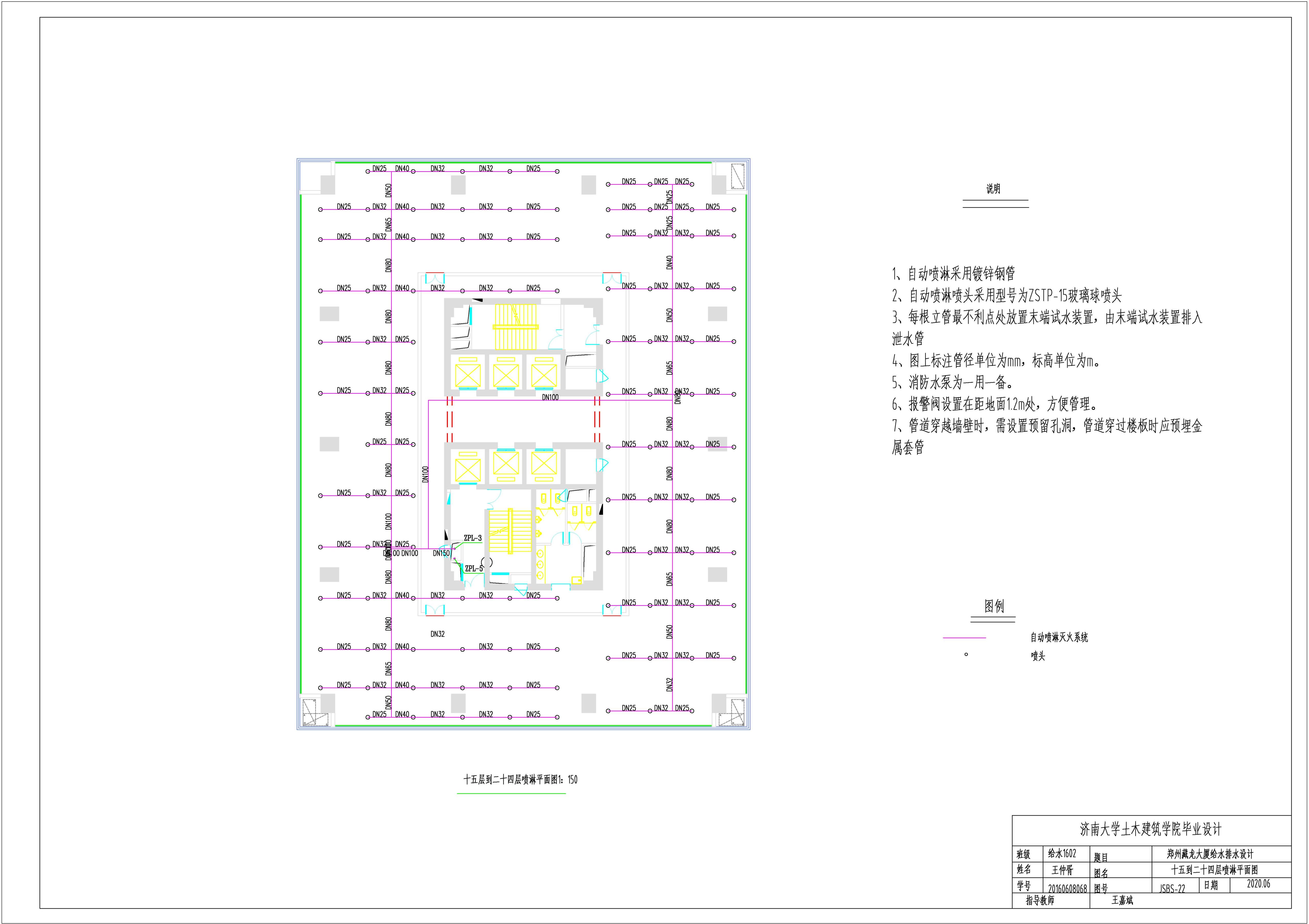 设计简介:本设计运用BIM技术进行毕业设计的全程设计,运用Revit软件进行全部设计。本设计是二十七层的综合性高层建筑的建筑给水排水设计,其中包含:给水系统、排水系统、雨水系统、自动喷淋灭火系统,消防栓系统以及热水包括热水循环系统。给水系统采用竖向分区,分为高、中、低三个区进行供给。一层到三层为低区,由市政管网直接供水;地上四层到地上十五层为中区,由生活泵房内的变频水泵直接提供;十六层到二十六层为高区,由水泵房内变频水泵直接提供。排水系统采用污废水合流排放,地上二层及以上的污废水由重力自流到地下一层排出室外,地上一层单独设置排出。热水系统采用竖向分区供水,分区方式与生活给水系统分区一致,热源系统采用市政蒸汽,同时设置热水循环系统,生活泵房设置在地下一层。雨水排水系统采用单雨水斗排水系统,按照郑州当地的暴雨强度与重现期选取雨水计算参数,进行雨水的设计,流入室外雨水检查井,并排入雨水管网。消防系统用水采用消防水池,消防水池放置在地下二层中。消防水箱设置在屋顶机房层。消火栓系统水平管各层成环,自动喷淋灭火系统由地下二层消防水泵直接供水,与室内消防栓灭火系统共用消防水泵。