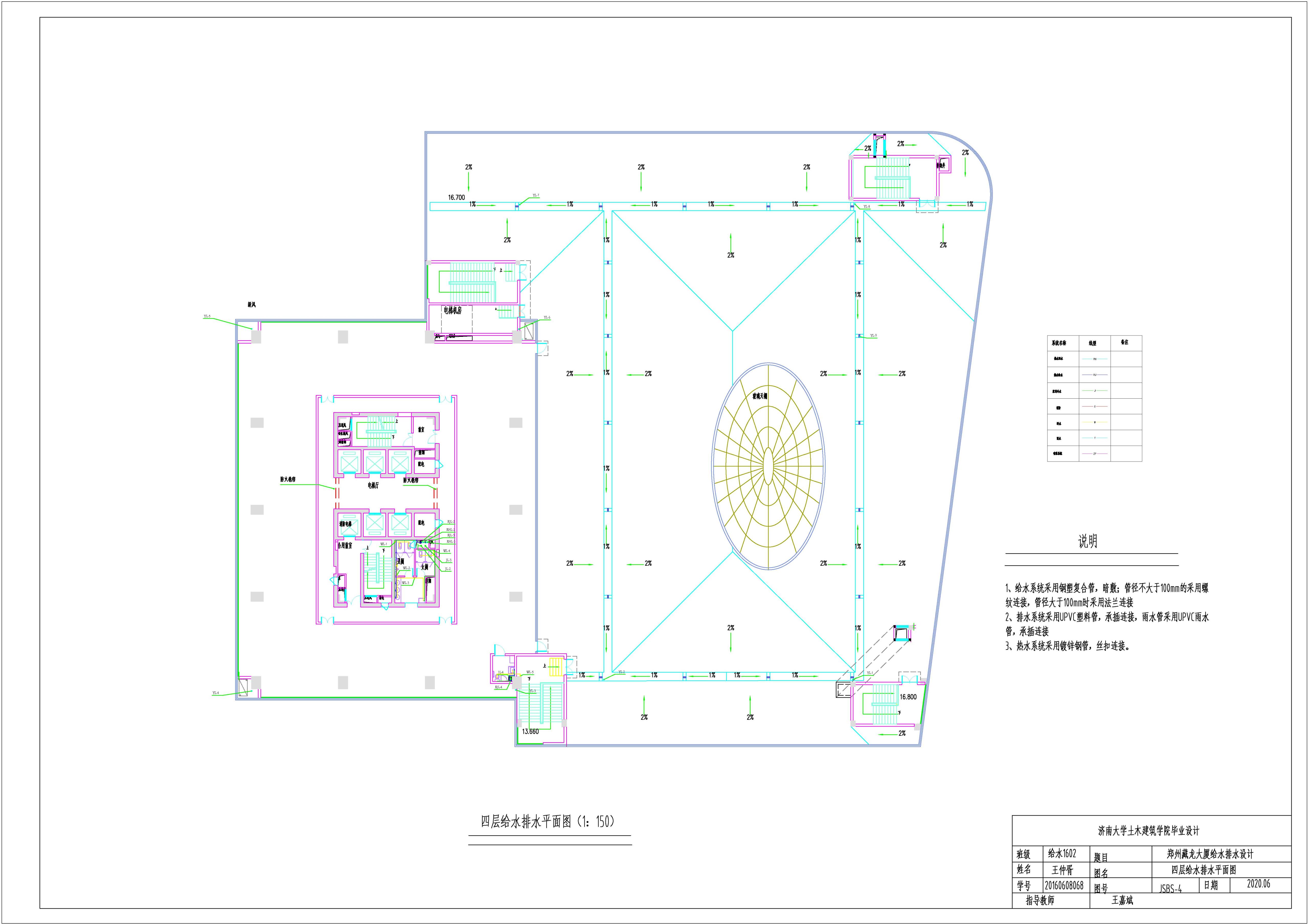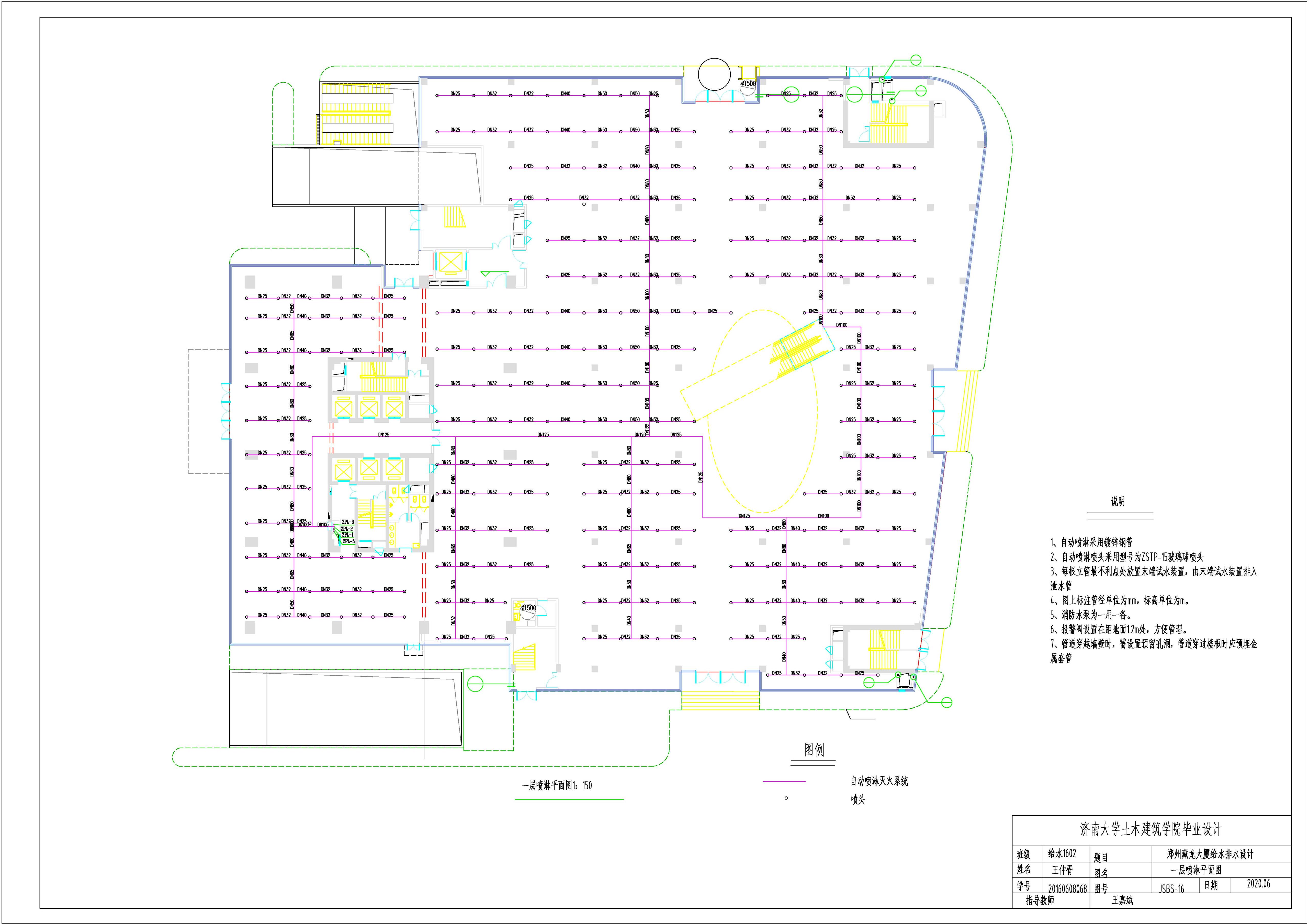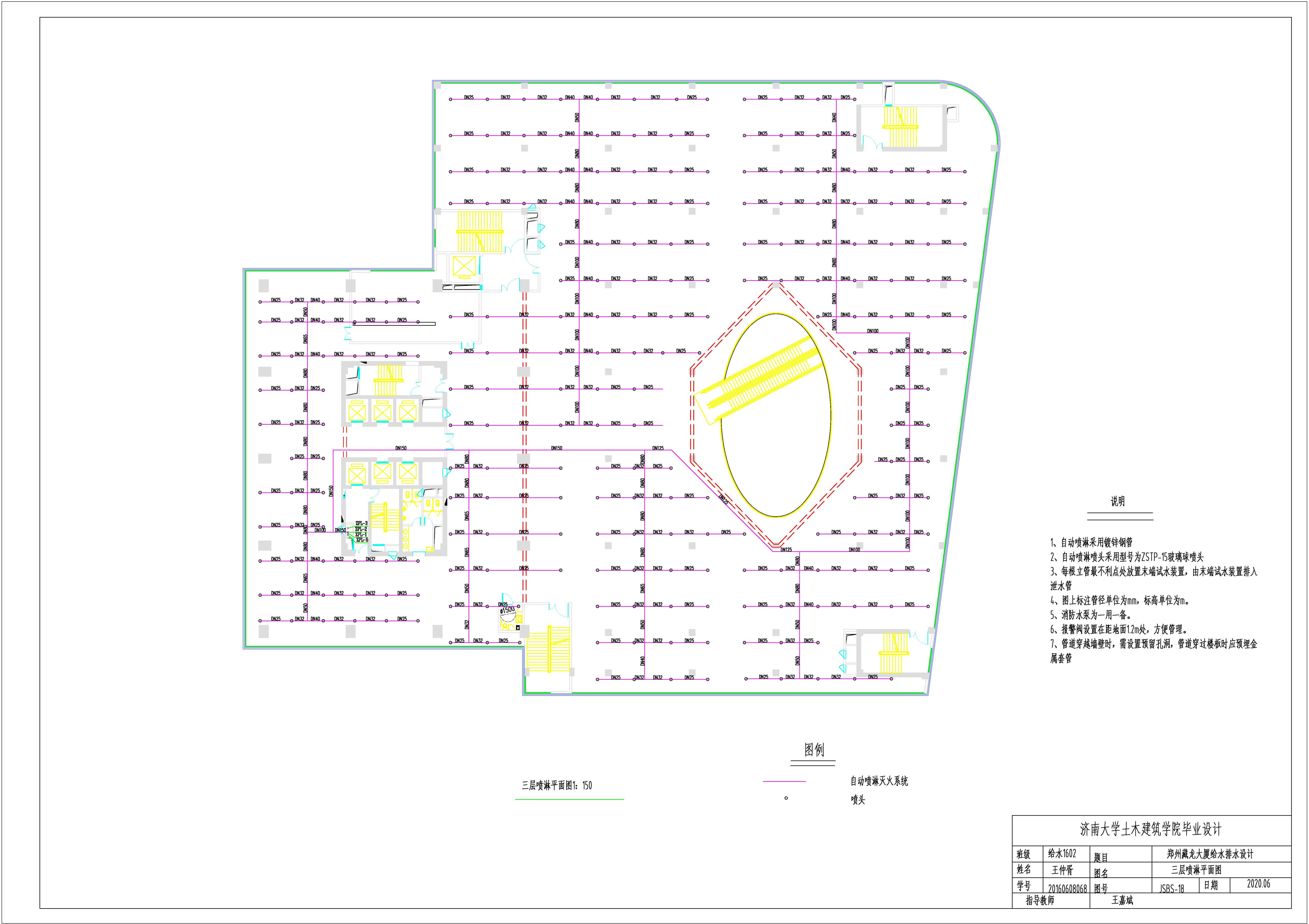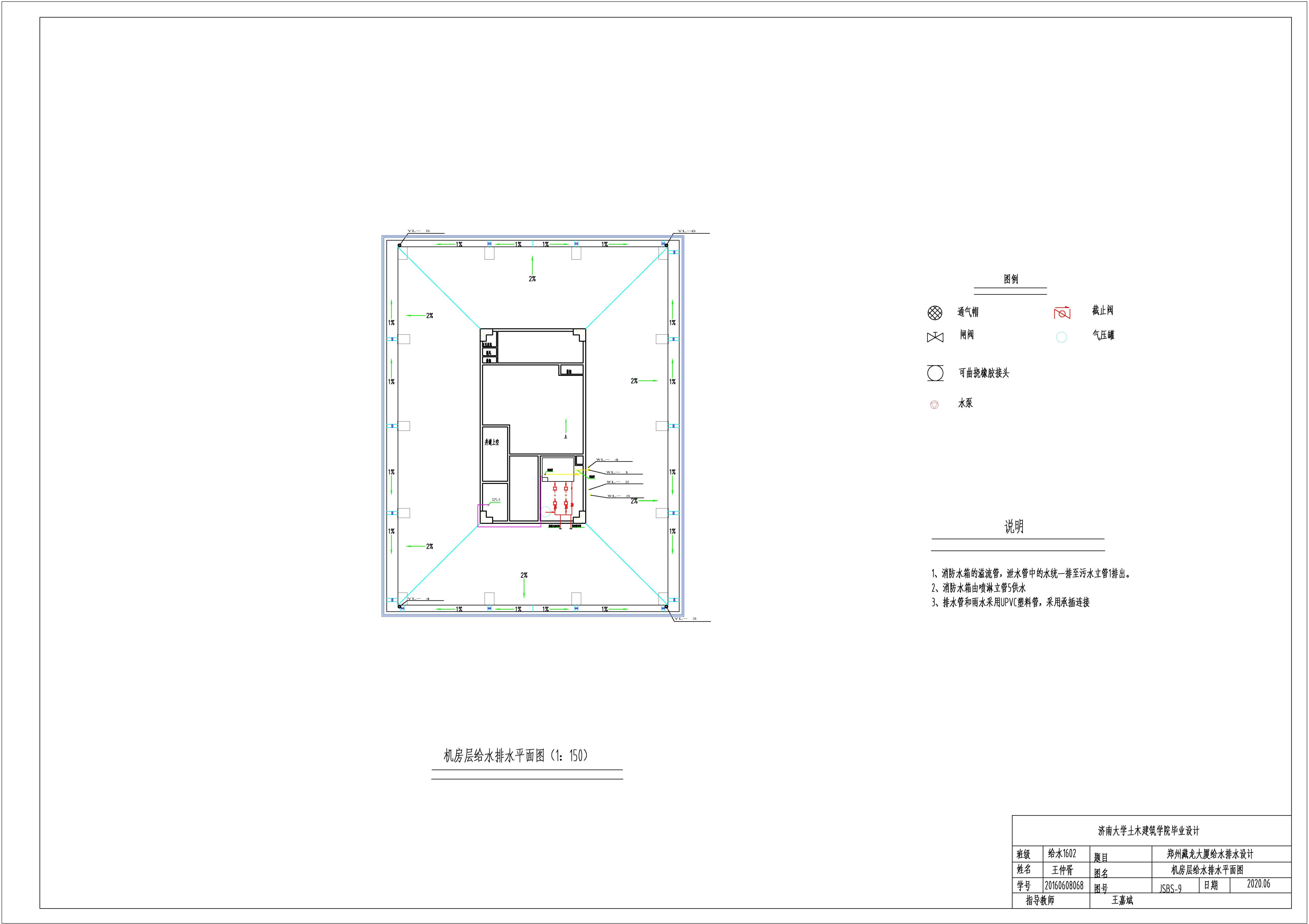 设计简介:本设计运用BIM技术进行毕业设计的全程设计,运用Revit软件进行全部设计。本设计是二十七层的综合性高层建筑的建筑给水排水设计,其中包含:给水系统、排水系统、雨水系统、自动喷淋灭火系统,消防栓系统以及热水包括热水循环系统。给水系统采用竖向分区,分为高、中、低三个区进行供给。一层到三层为低区,由市政管网直接供水;地上四层到地上十五层为中区,由生活泵房内的变频水泵直接提供;十六层到二十六层为高区,由水泵房内变频水泵直接提供。排水系统采用污废水合流排放,地上二层及以上的污废水由重力自流到地下一层排出室外,地上一层单独设置排出。热水系统采用竖向分区供水,分区方式与生活给水系统分区一致,热源系统采用市政蒸汽,同时设置热水循环系统,生活泵房设置在地下一层。雨水排水系统采用单雨水斗排水系统,按照郑州当地的暴雨强度与重现期选取雨水计算参数,进行雨水的设计,流入室外雨水检查井,并排入雨水管网。消防系统用水采用消防水池,消防水池放置在地下二层中。消防水箱设置在屋顶机房层。消火栓系统水平管各层成环,自动喷淋灭火系统由地下二层消防水泵直接供水,与室内消防栓灭火系统共用消防水泵。