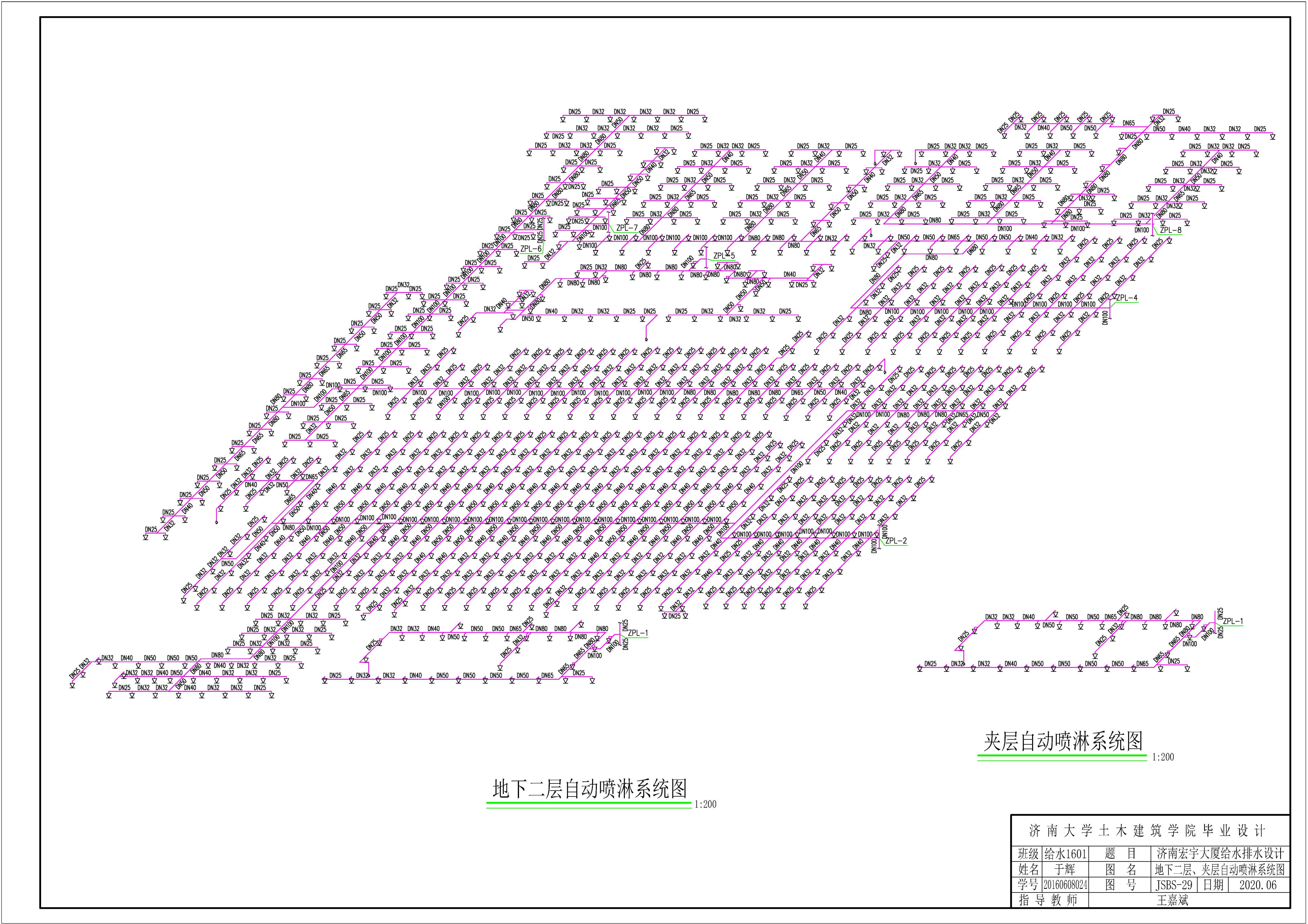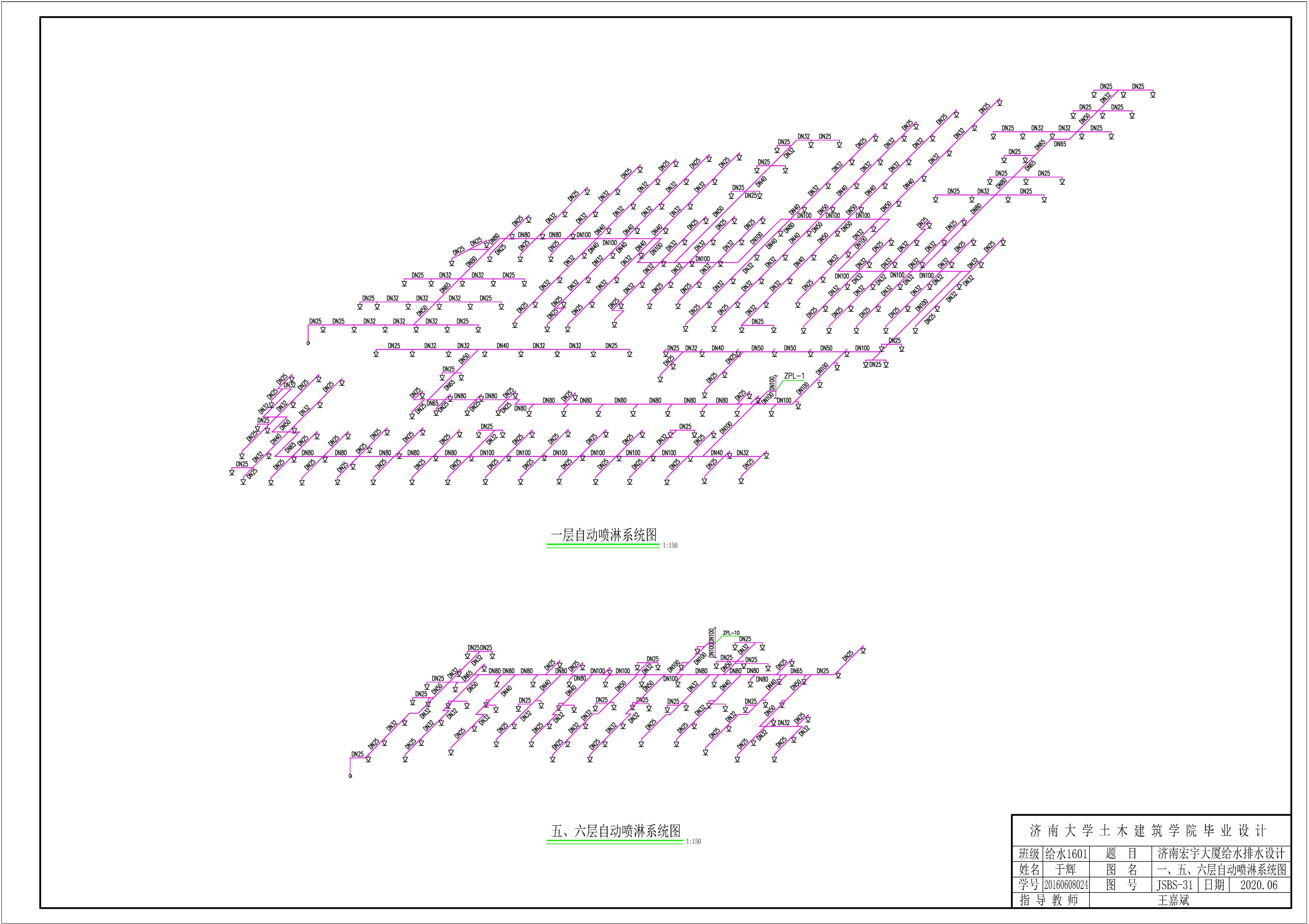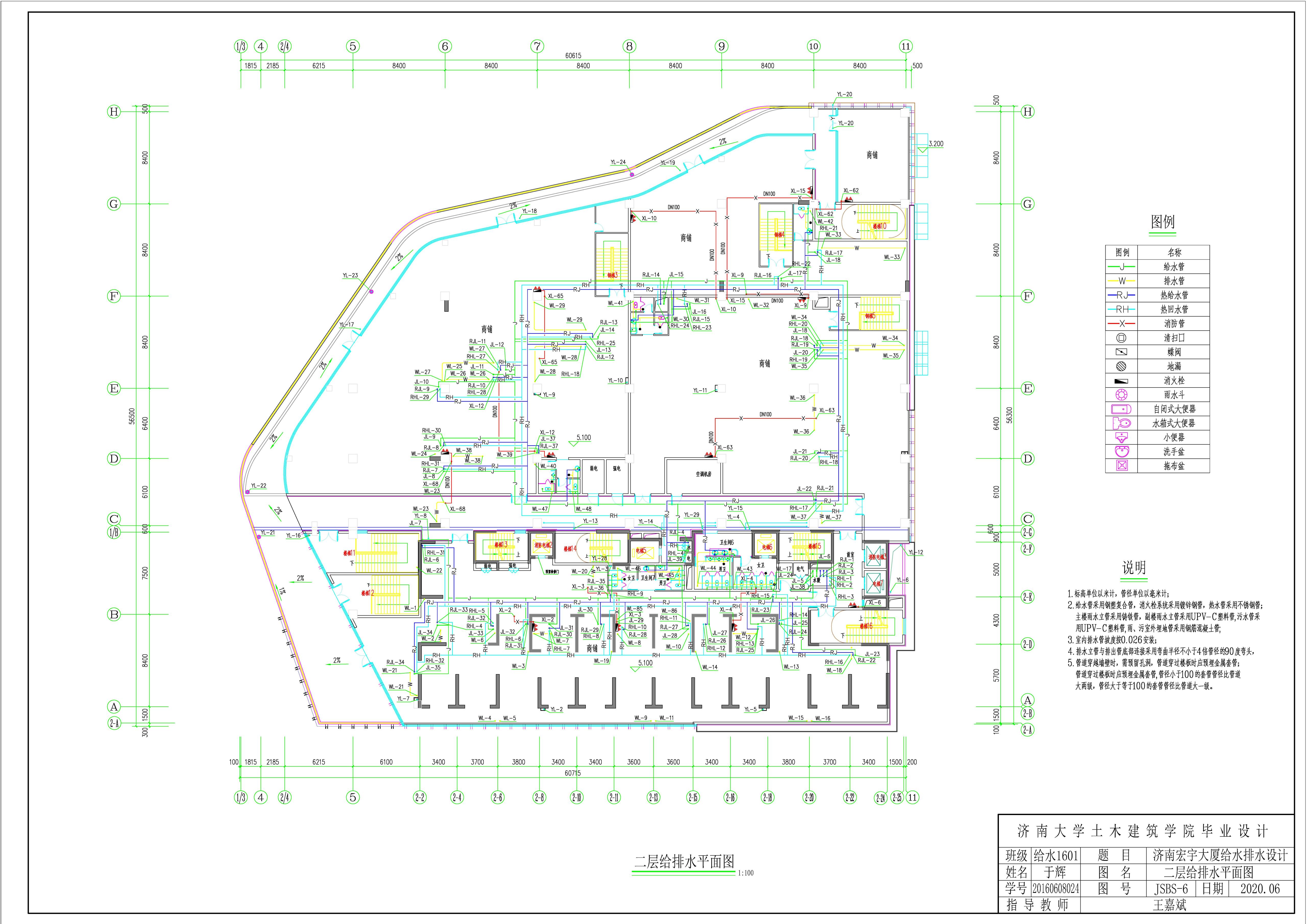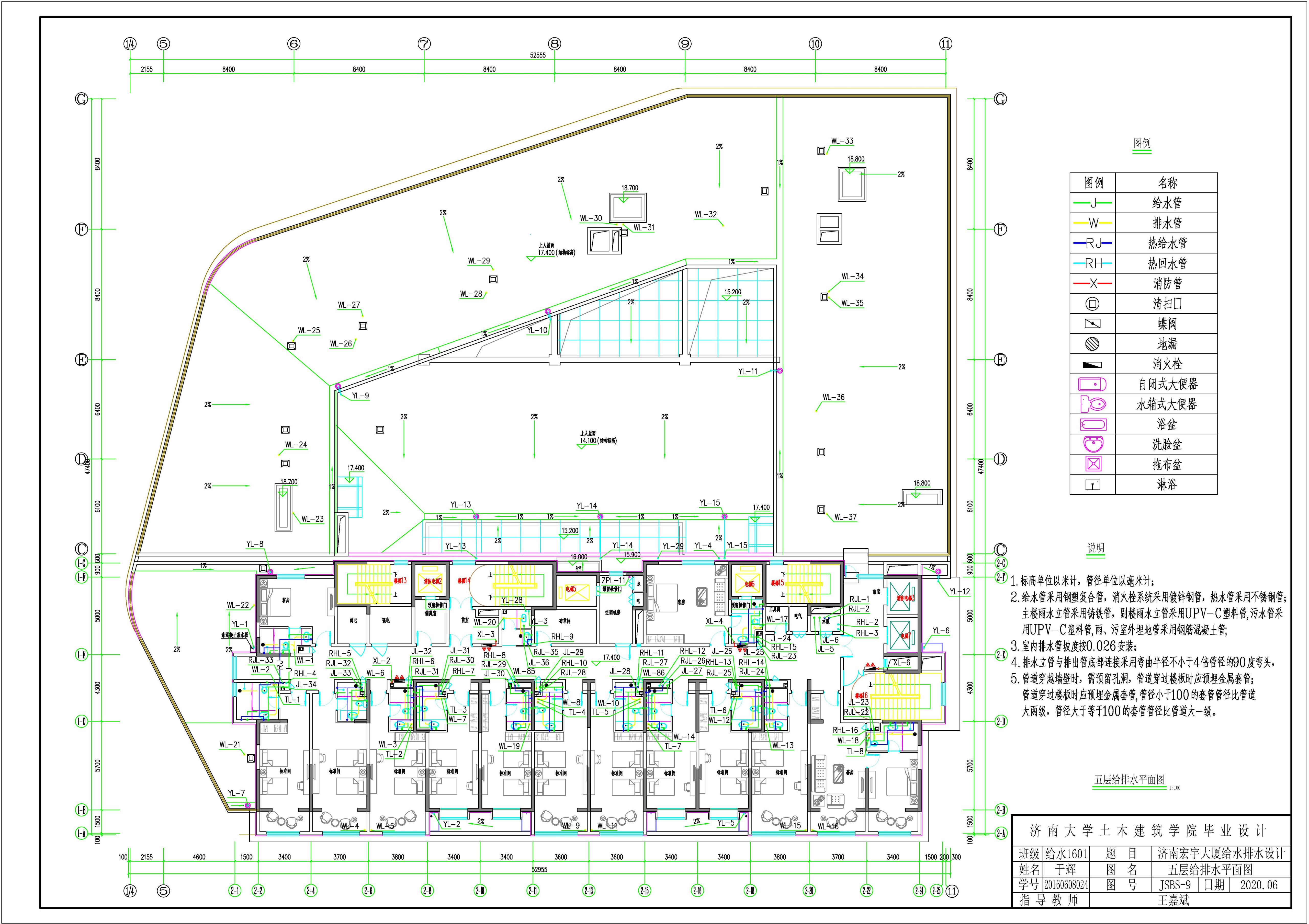 设计内容:济南宏宇大厦给水排水系统设计,本设计为二十四层的高层综合楼,位于济南市,建筑地上高度为79.9m,地下高度为-12.8m。该建筑分为主楼和副楼两部分,主楼地下三层(不包含夹层),地上二十四层(不包含设备层和机房层),副楼地下三层,地上四层。建筑副楼地上一至二层为商店,三至四层为宾馆,主楼地上一至二层为商店,三至六层为宾馆,七至二十层为住宅。地下一层由商店、储藏室、超市和电影院组成;地下二层由电影院、停车场和储藏室组成;地下三层由停车场和储藏室组成。建筑地下一、二、三层建筑面积为10302.65 m2,地上一层建筑面积2785.71m2,高层建筑面积576.53m2 。
