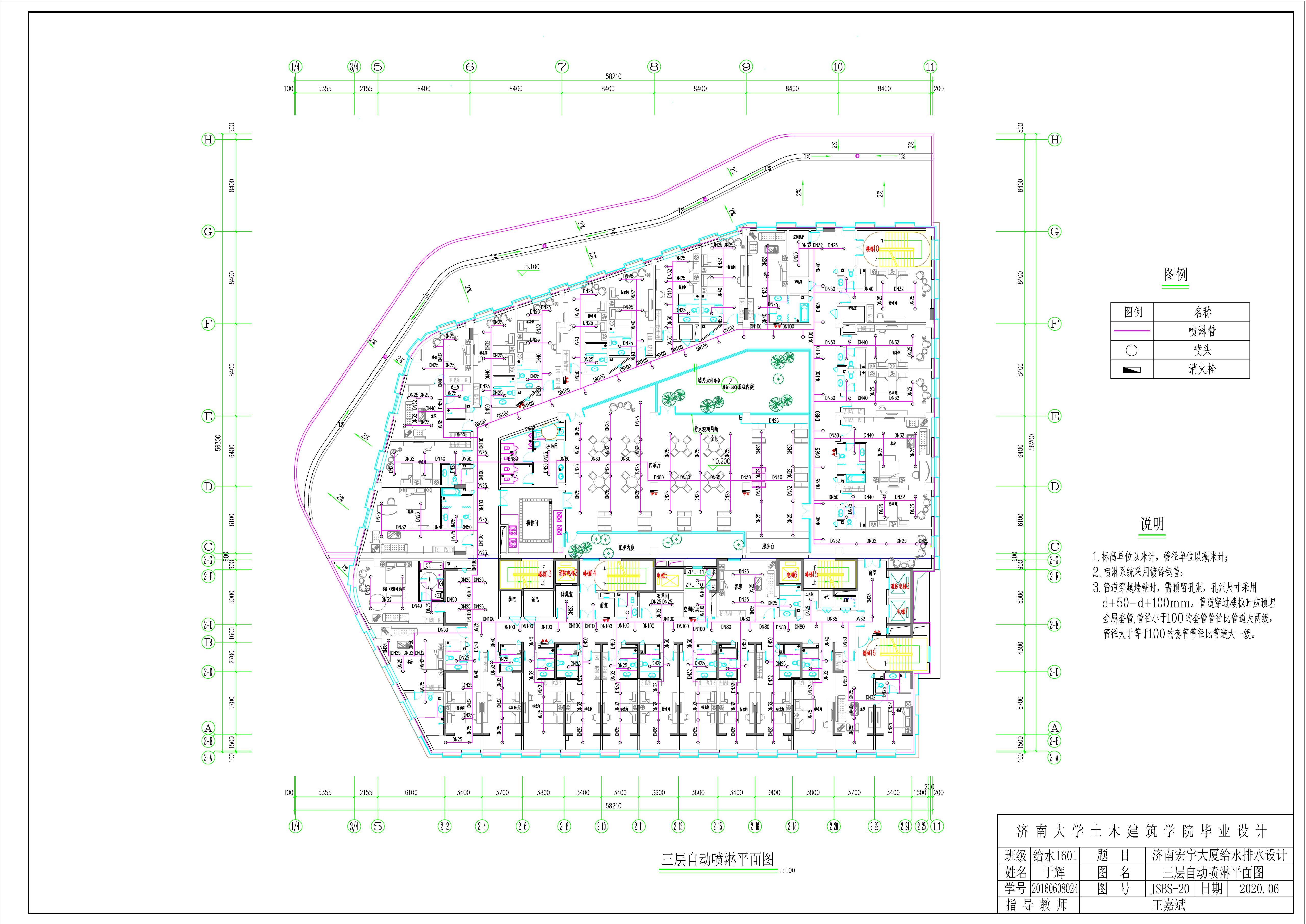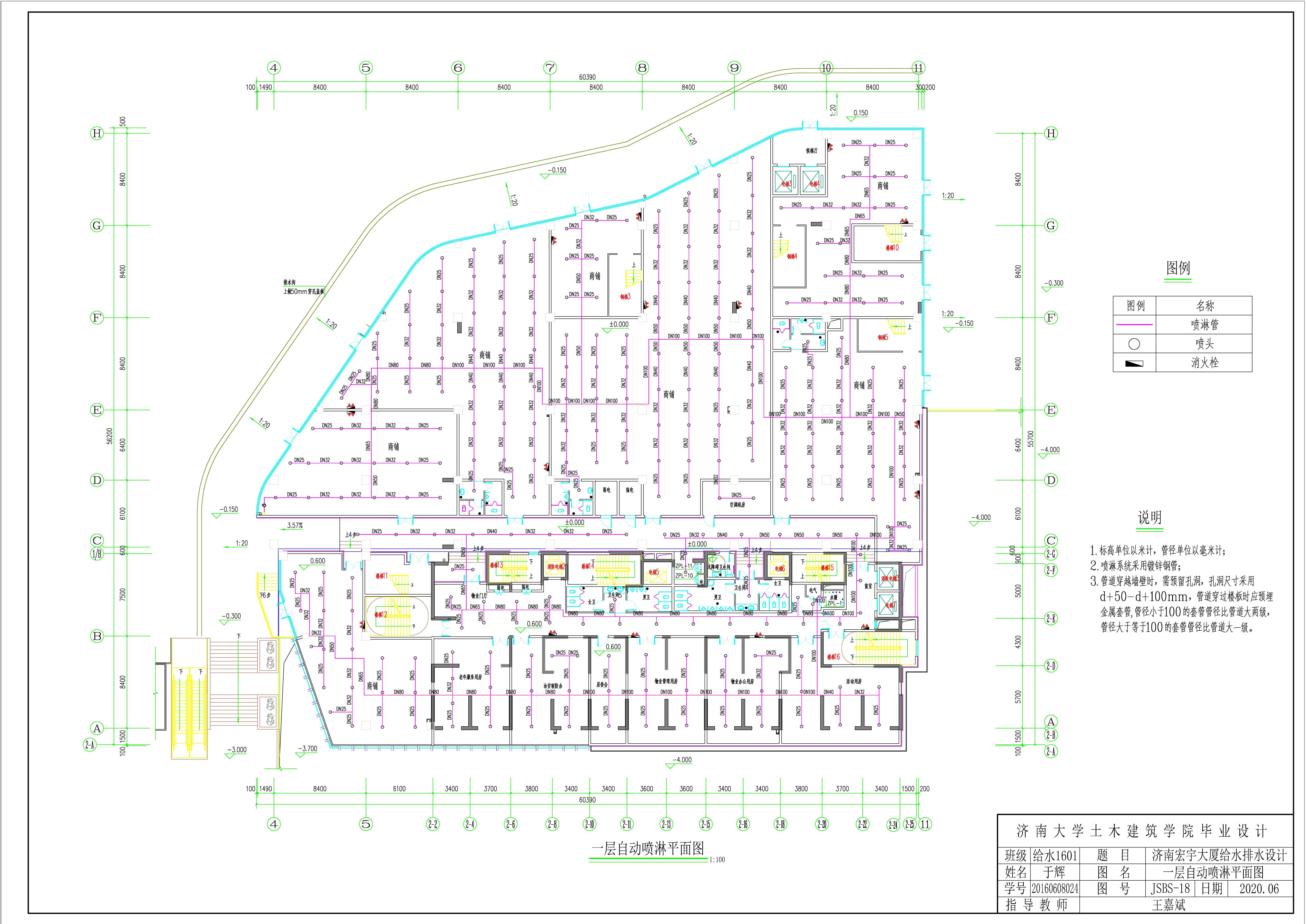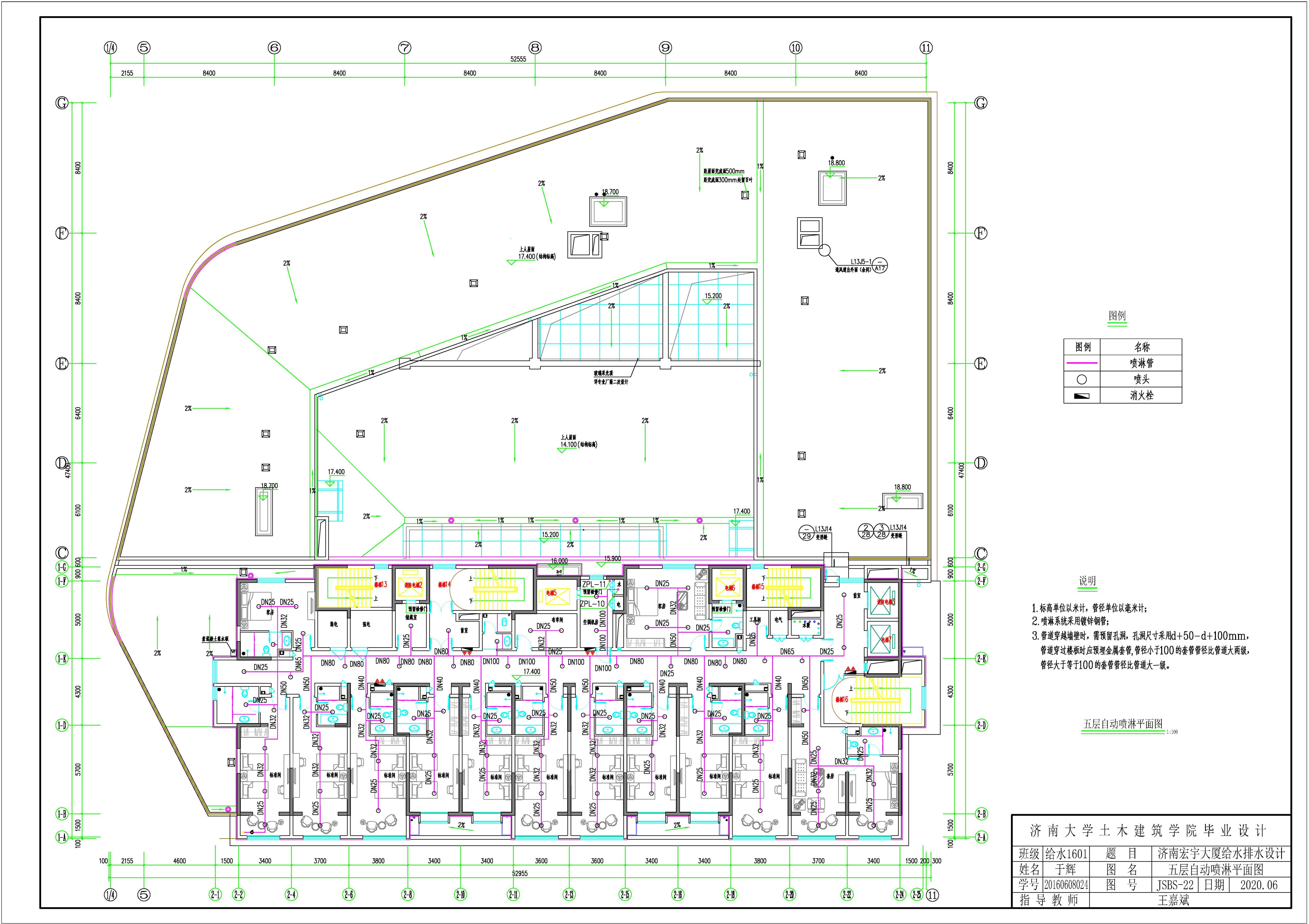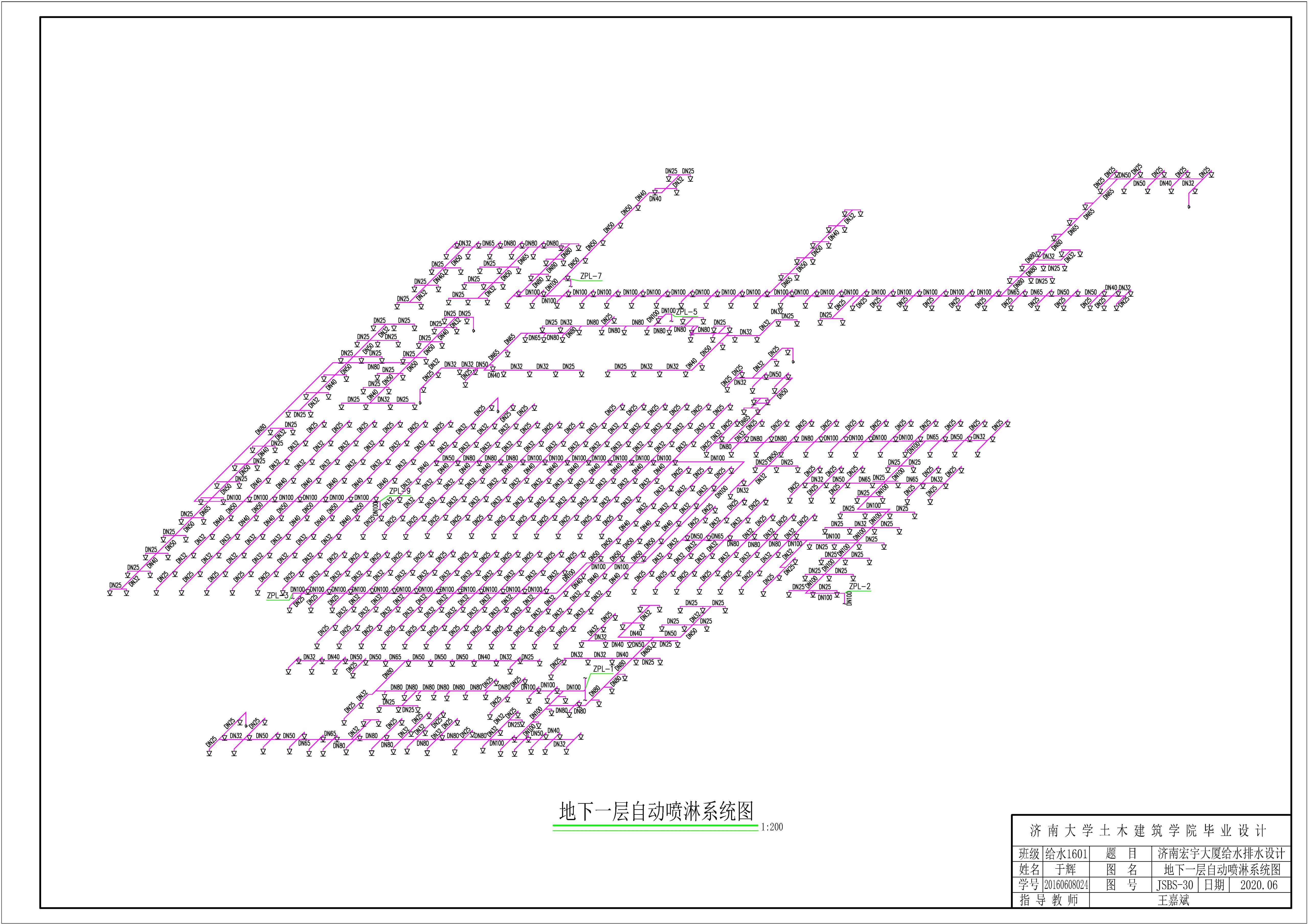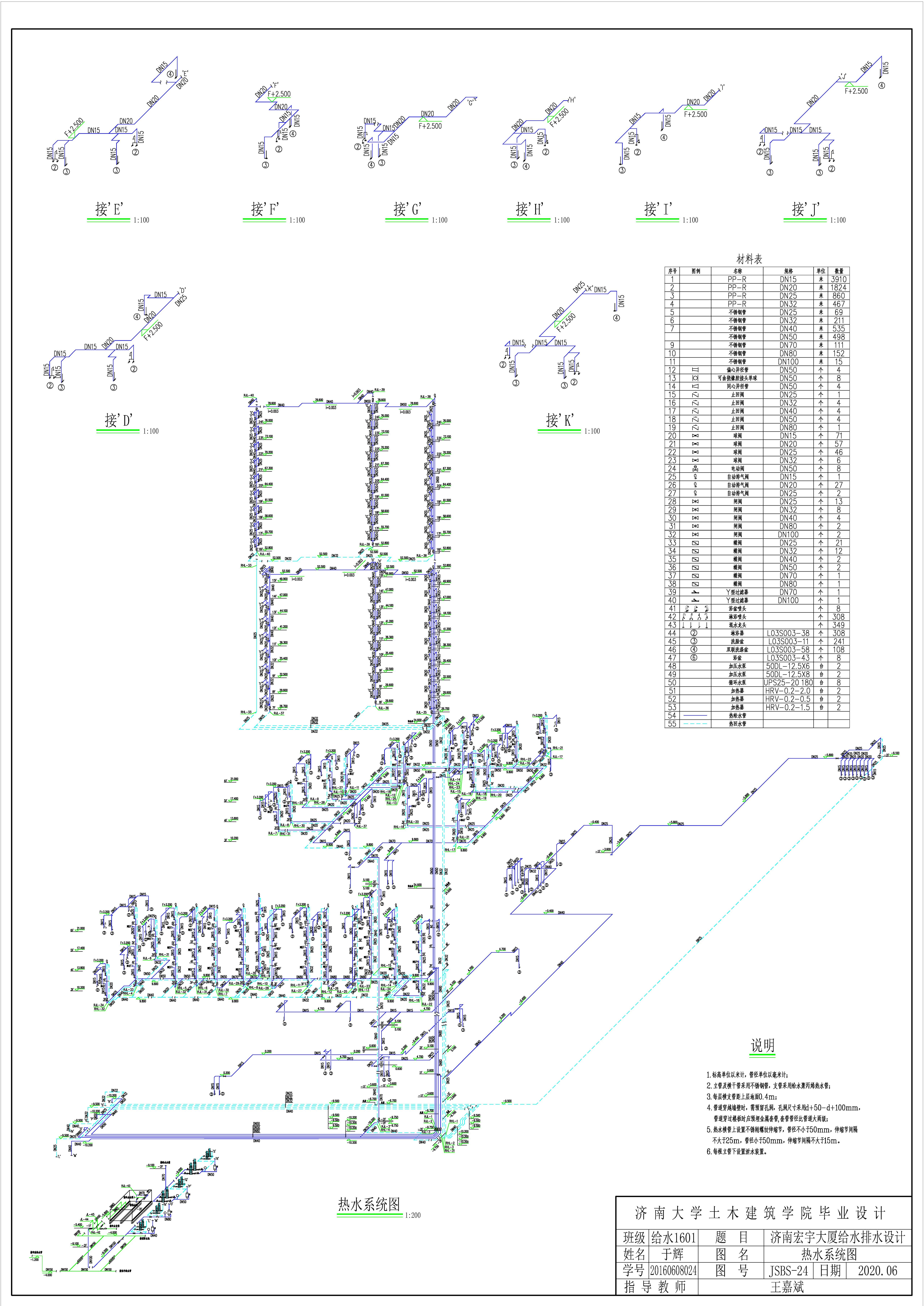 设计内容:济南宏宇大厦给水排水系统设计,本设计为二十四层的高层综合楼,位于济南市,建筑地上高度为79.9m,地下高度为-12.8m。该建筑分为主楼和副楼两部分,主楼地下三层(不包含夹层),地上二十四层(不包含设备层和机房层),副楼地下三层,地上四层。建筑副楼地上一至二层为商店,三至四层为宾馆,主楼地上一至二层为商店,三至六层为宾馆,七至二十层为住宅。地下一层由商店、储藏室、超市和电影院组成;地下二层由电影院、停车场和储藏室组成;地下三层由停车场和储藏室组成。建筑地下一、二、三层建筑面积为10302.65 m2,地上一层建筑面积2785.71m2,高层建筑面积576.53m2 。