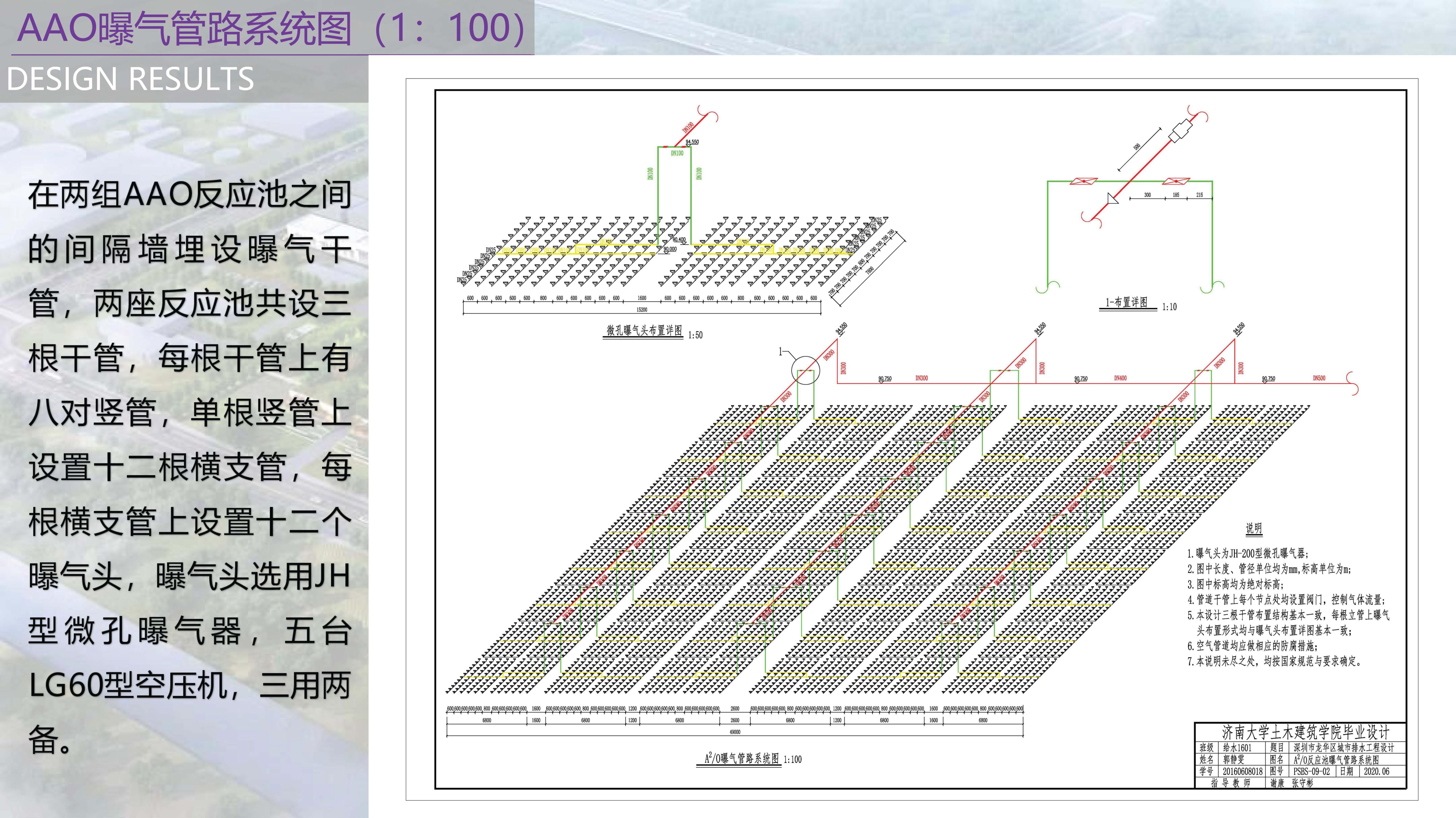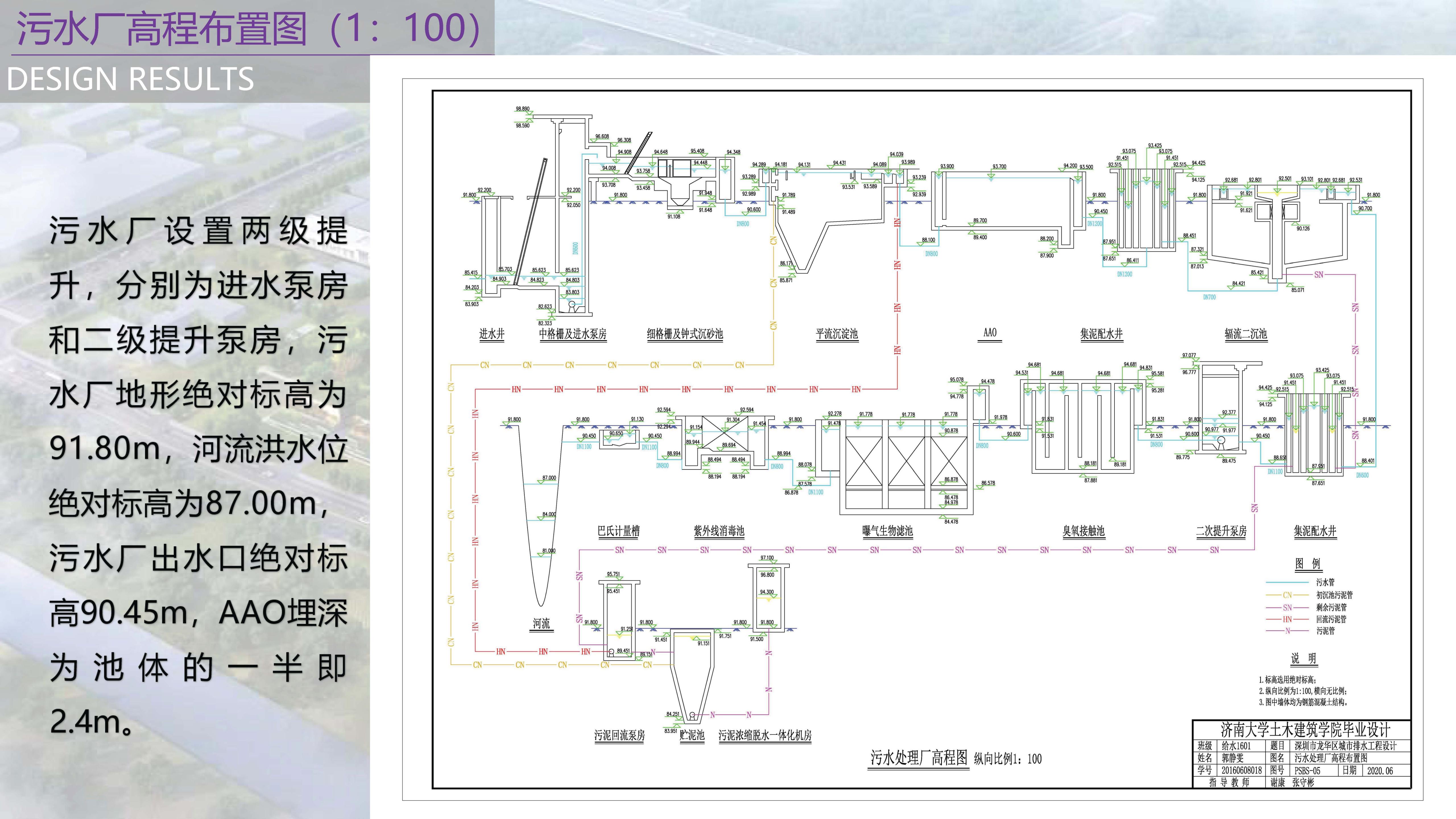 污水厂最大日设计污水量87700m3/d。设计污水进水水质为:SS=266.30mg/L,COD=412.40mg/L,BOD5=243.38mg/L,TN=37.93mg/L,NH3-N=27.48mg/L,TP=4.15mg/L。经处理达到国家污水排放标准一级A标准后排放。