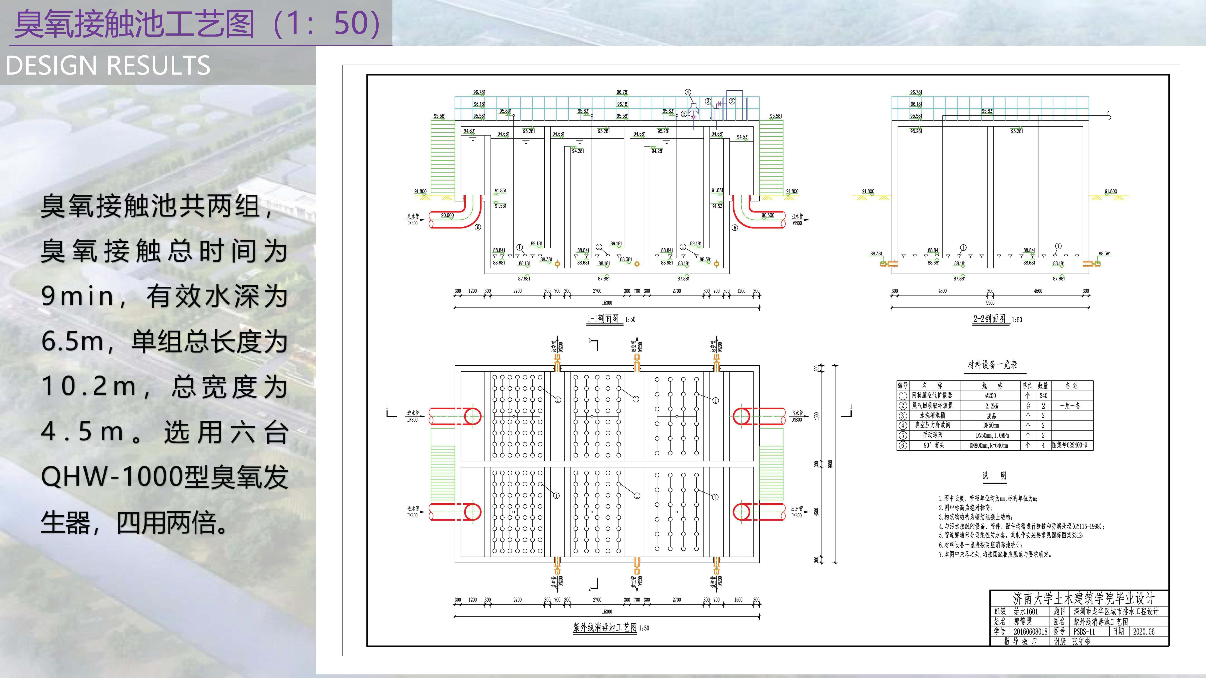 污水处理核心工艺采用“A2/O艺+BAF工艺”。主体工艺A2/O在处理有机碳污染物的同时可以实现同步脱氮除磷,相较于传统活性污泥法的优势有投资少、运行费用低及化学污泥少等优点。由于本设计中二级处理出水可生化性能一般,需在深度处理工艺前设置臭氧预氧化池借以提高污水的可生化性能。深度处理工艺采用BAF工艺,该工艺集生物氧化和截留悬浮固体于一体,水力负荷大,运行能耗低且后续无需设置滤池即可达标排放,节省了相应的占地面积及基建投资。本设计的污泥处置采用污泥回流泵房、贮泥池及污泥浓缩脱水设备进行一体化处理。