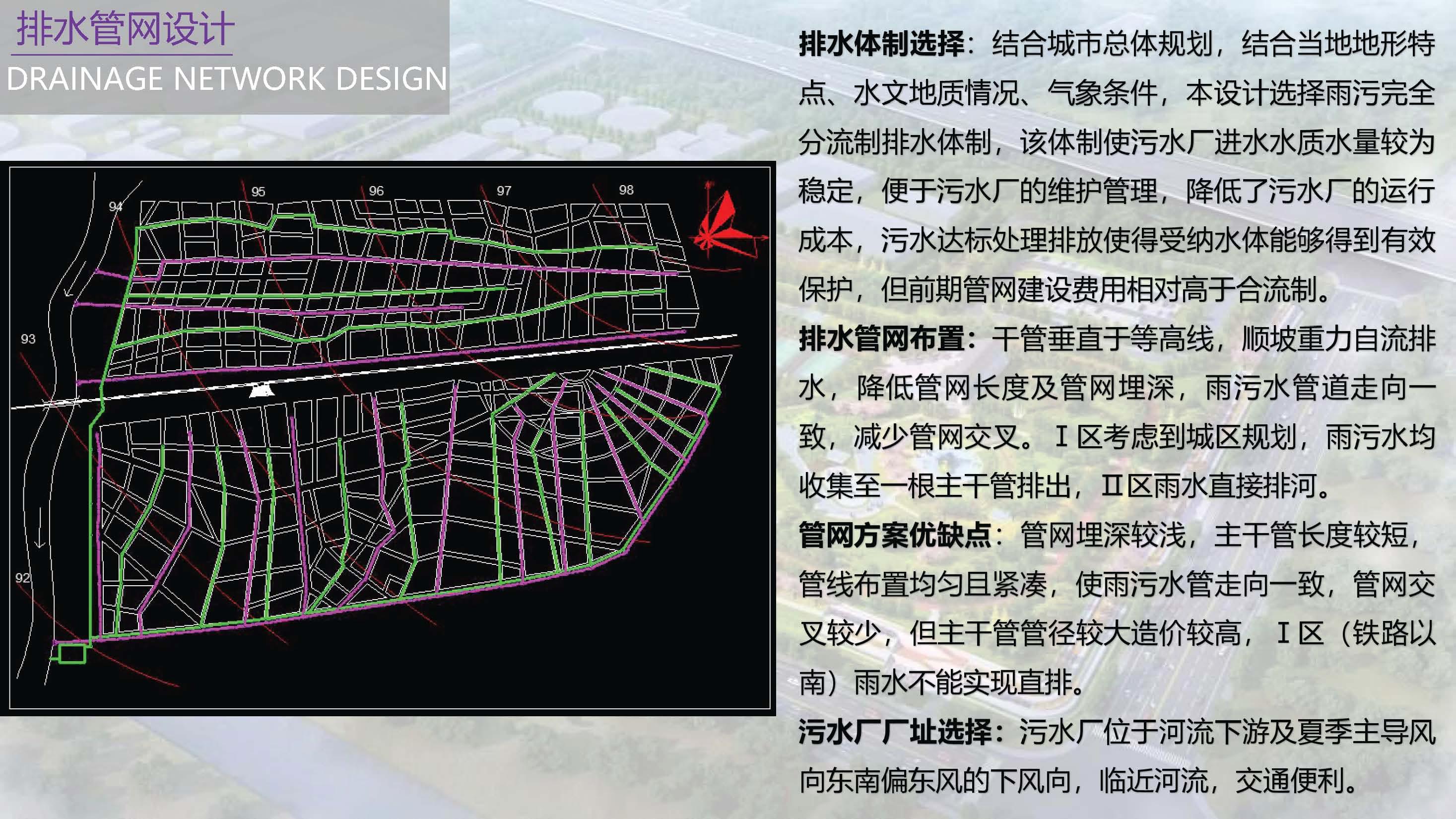 设计内容:本设计为深圳市龙华区城市排水工程设计,主要进行城市排水管网设计及污水处理厂设计。设计区域位于深圳市龙华区,主要由住宅区和工厂组成,年平均气温22℃,常年主导风向为东南偏东。龙华区地面标高由东北向西南逐渐降低,河流位于城区西侧,自北向南流。铁路为东西走向并将该规划区分为Ⅰ、Ⅱ两个区。设计采用完全分流制排水系统,雨水直接排河而污水处理后排河。